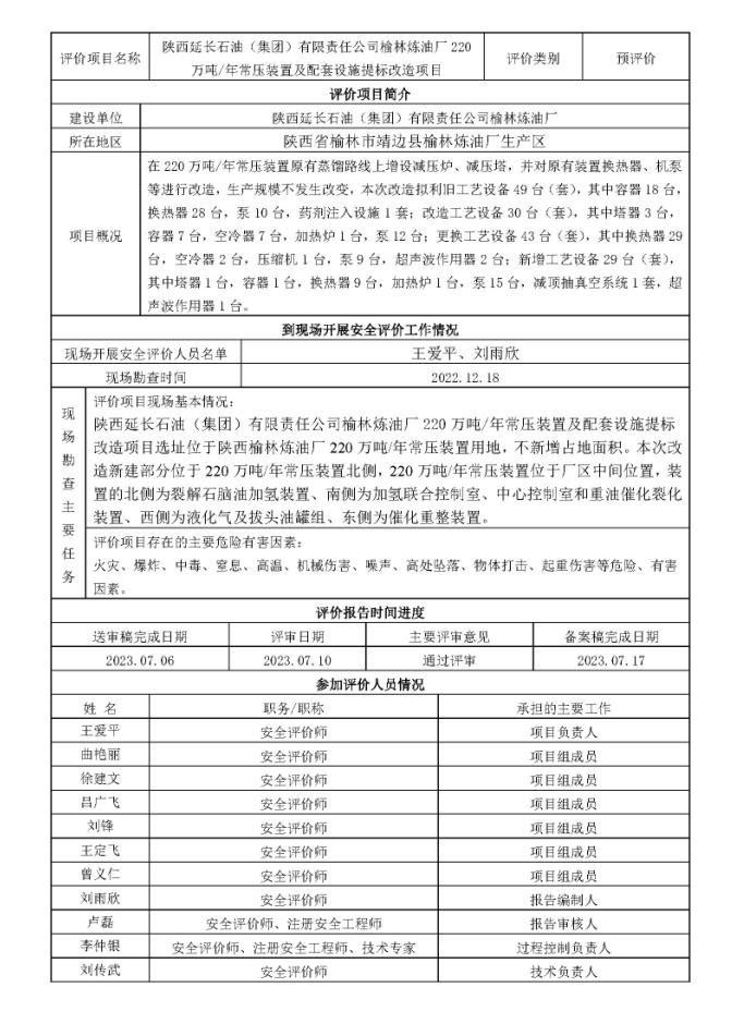 KLDAP-[2022]-2.18 陜西延長(zhǎng)石油(集團(tuán))有限責(zé)任公司榆林煉油廠220萬噸年常壓裝置及配套設(shè)施提標(biāo)改造項(xiàng)目安全預(yù)評(píng)價(jià)