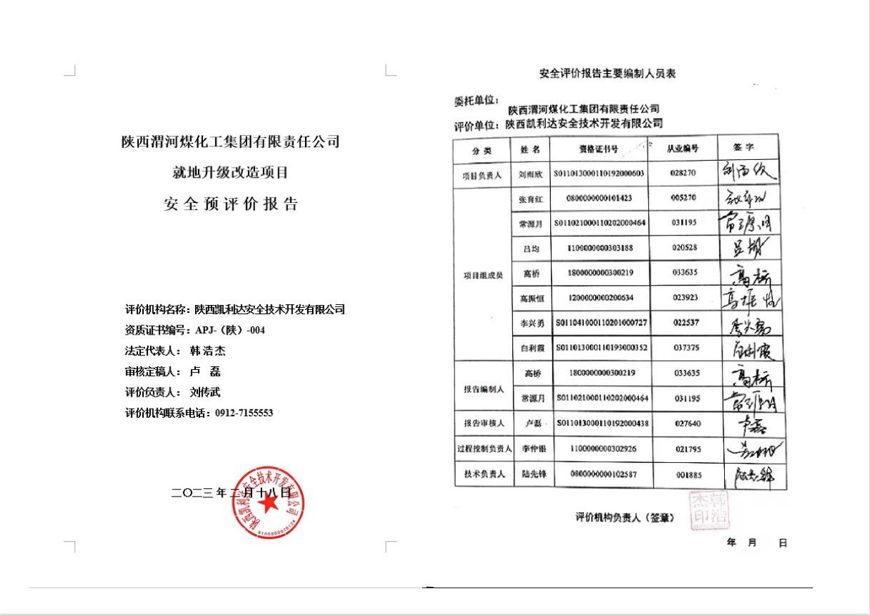 KLDAP[2023]-2.4 陜西渭河煤化工集團(tuán)有限責(zé)任公司就地升級(jí)改造項(xiàng)目安全預(yù)評(píng)價(jià)