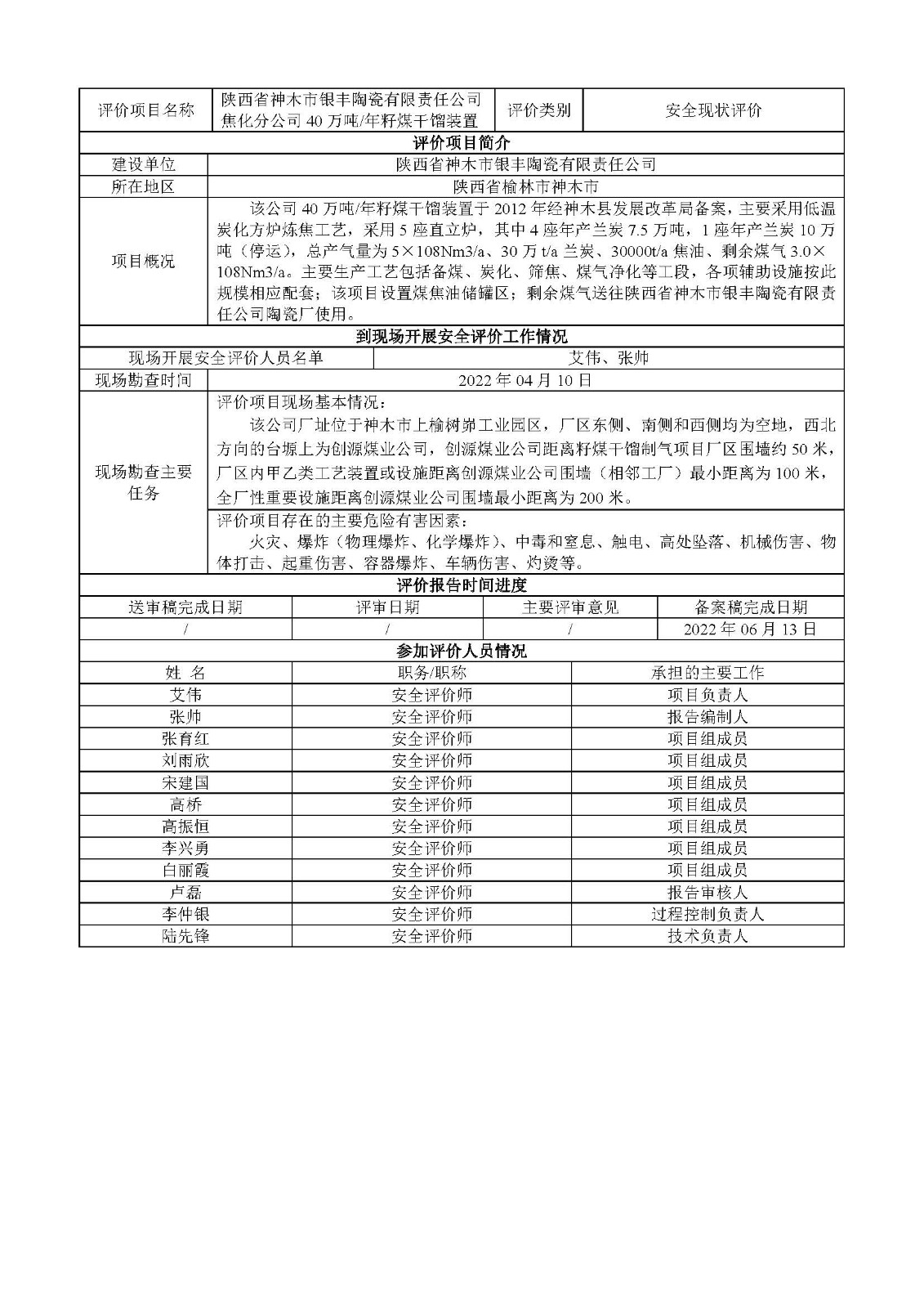 KLDAP[2022]-1.3 陜西神木銀豐陶瓷有限責(zé)任公司焦化分公司40萬噸/年籽煤干餾裝置安全現(xiàn)狀