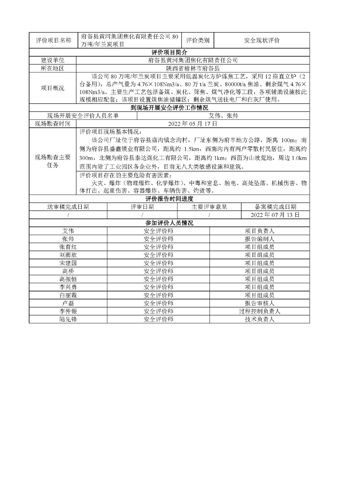 KLDAP[2022]-1.4 府谷縣黃河集團(tuán)焦化有限責(zé)任公司80萬噸/年蘭炭項(xiàng)目安全現(xiàn)狀