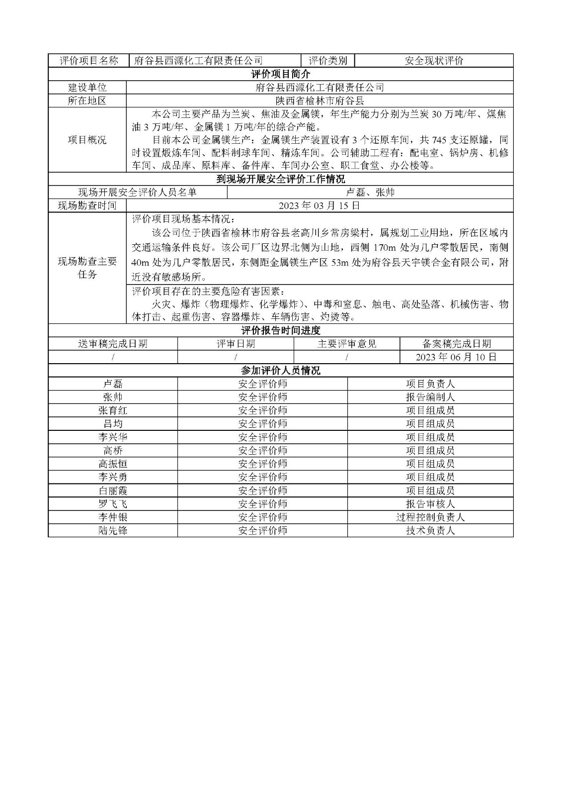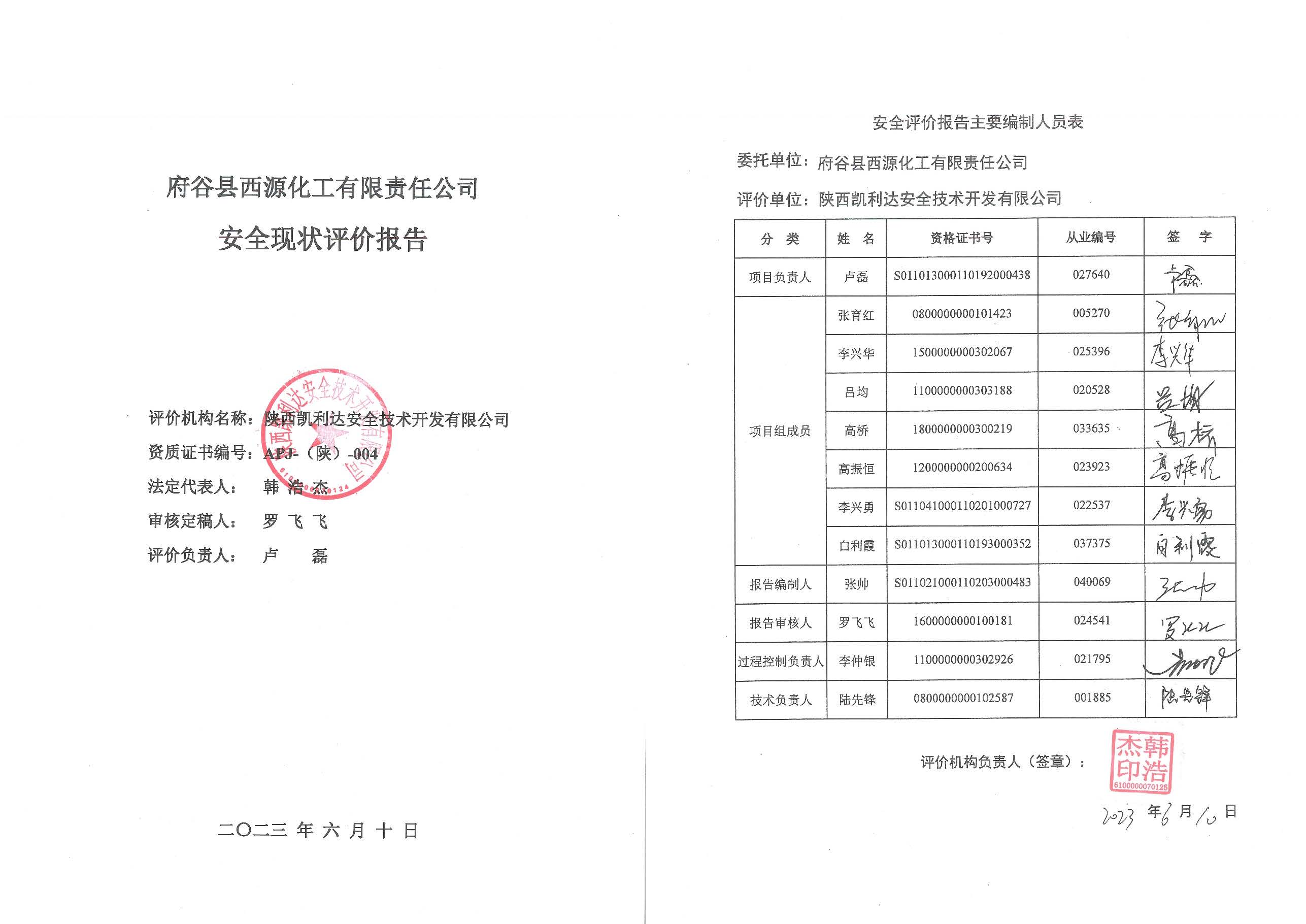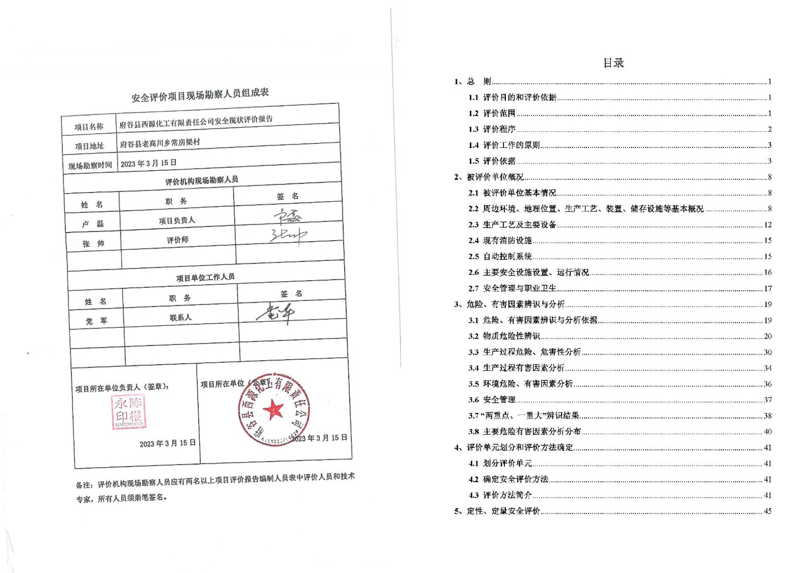 KLDAP[2023]-1.3 府谷縣西源化工有限責(zé)任公司安全現(xiàn)狀評價