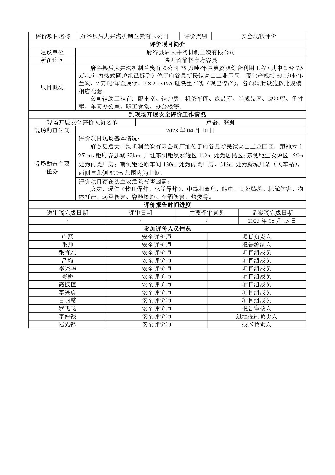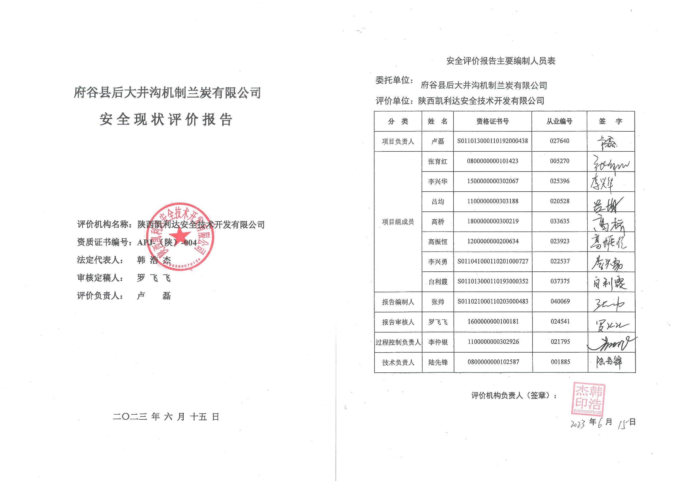 KLDAP[2023]-1.4 府谷縣后大井溝機制蘭炭有限公司安全現狀評價