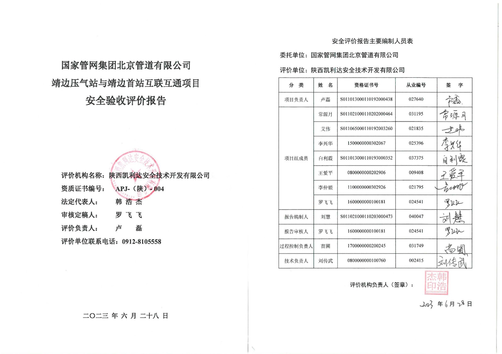 KLDAP[2023]-1.5 國家管網集團北京管道有限公司靖邊壓氣站與靖邊首站互聯互通項目安全設施竣工驗收評價