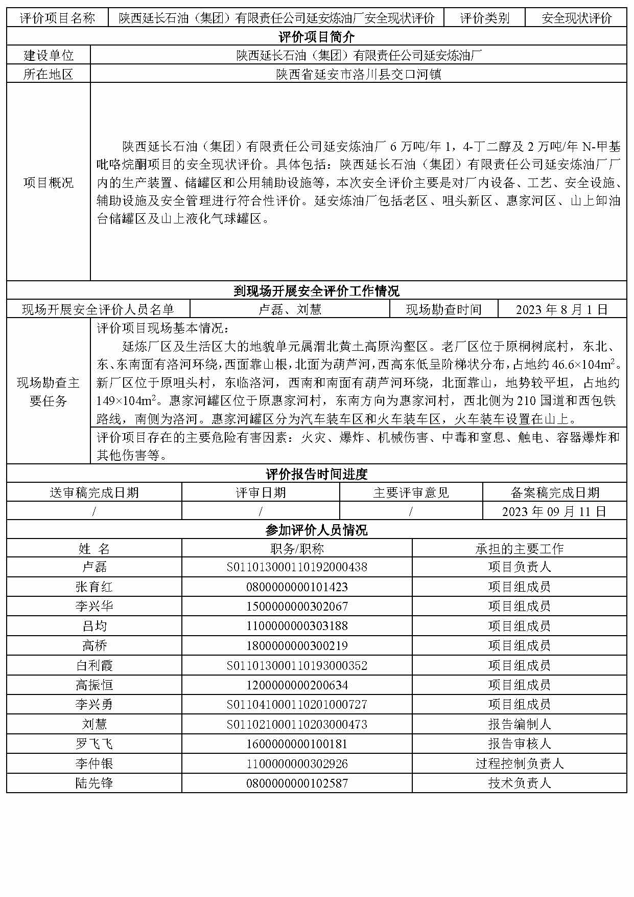 陜西延長石油(集團)有限責任公司延安煉油廠網站公示