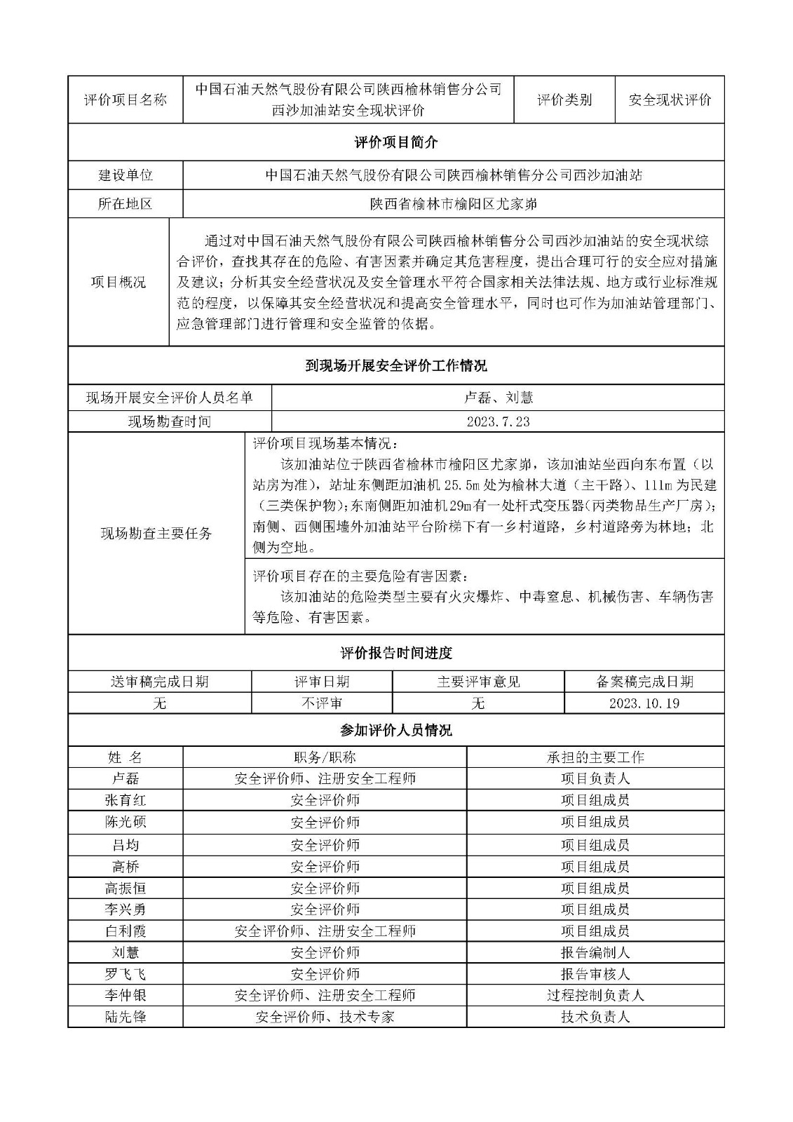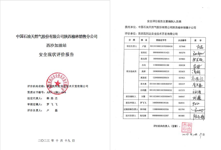中國石油天然氣股份有限公司陜西榆林銷售分公司西沙加油站安全現狀評價網站公示