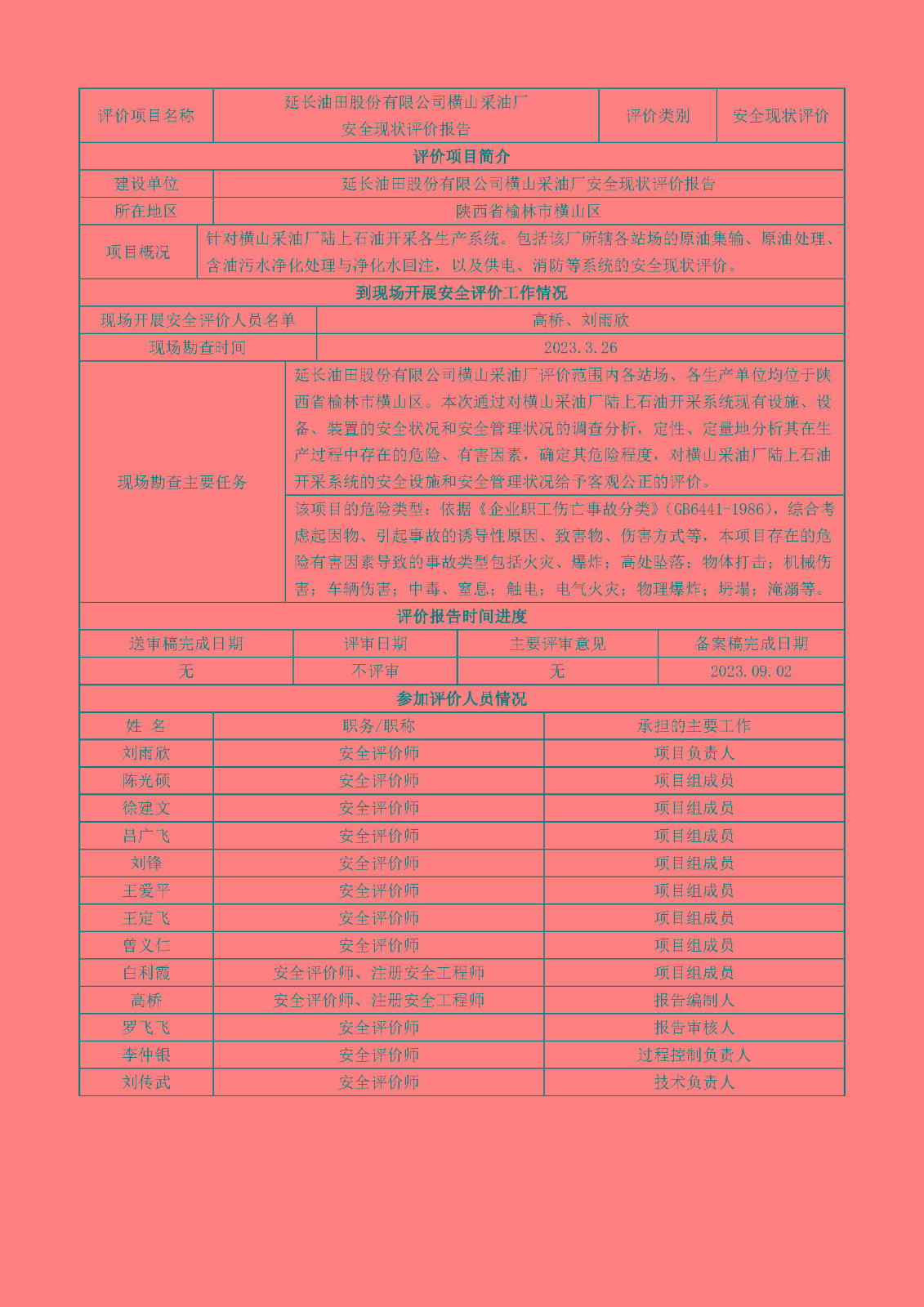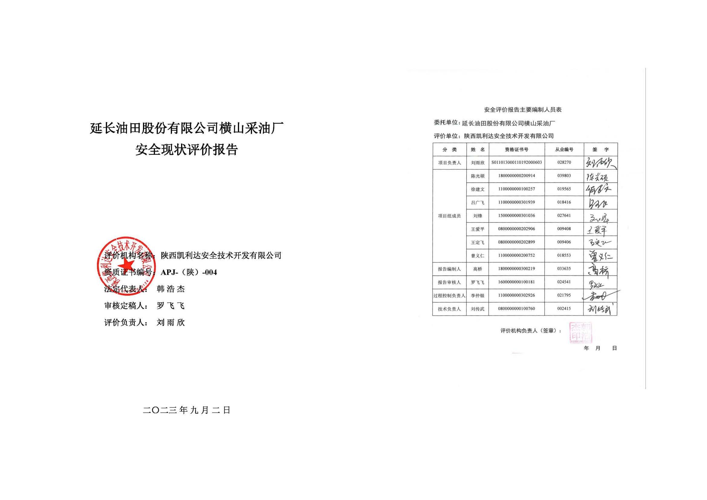延長油田股份有限公司橫山采油廠安全現狀評價-網上公示