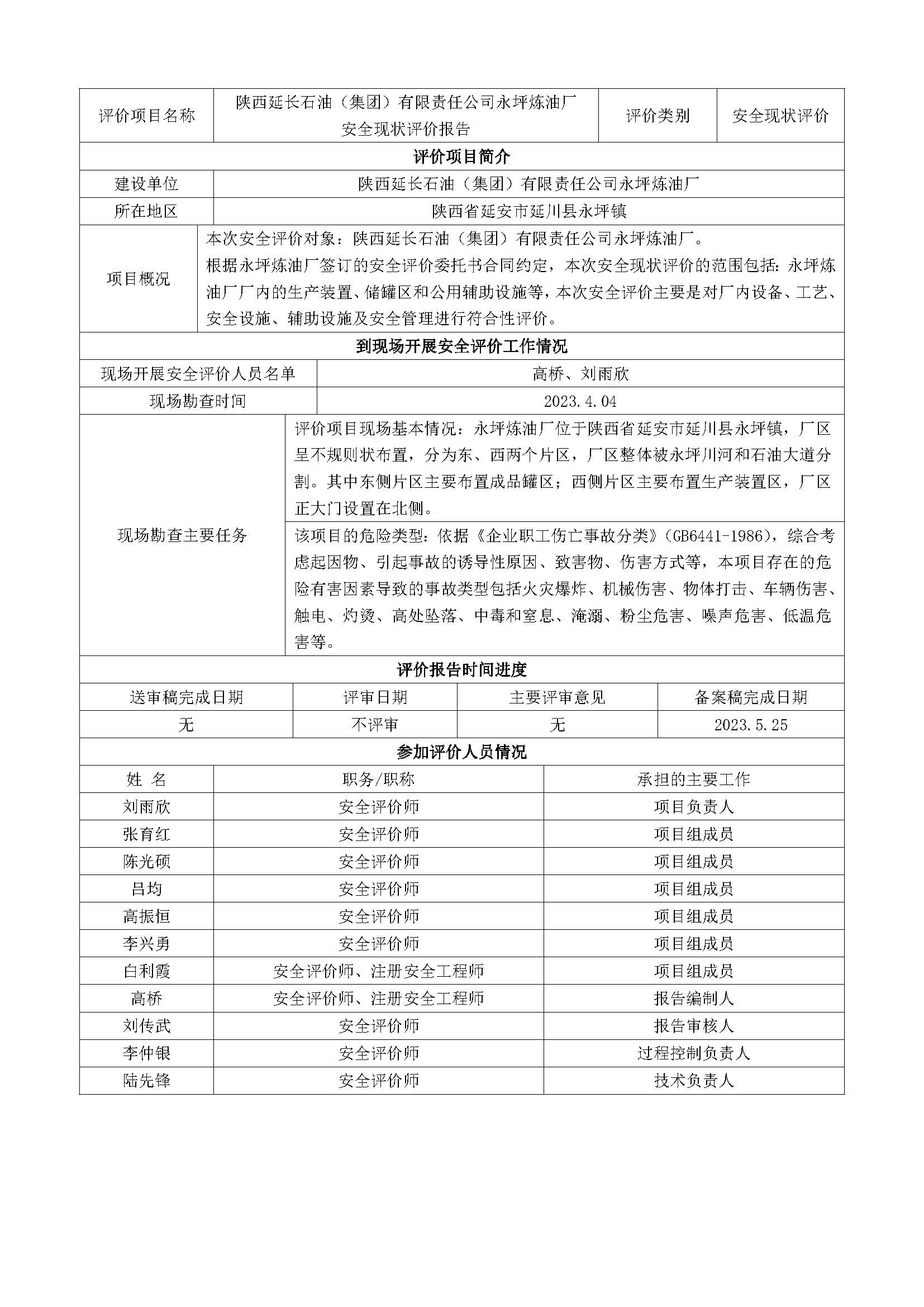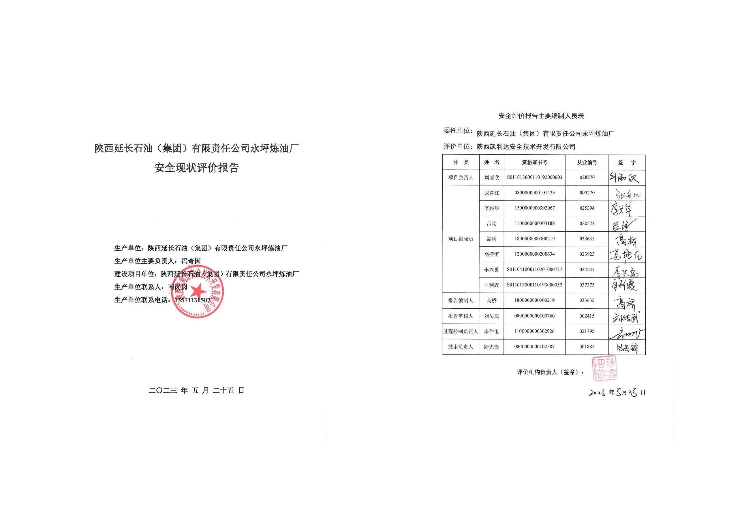 KLDAP-[2023]-2.9陜西延長石油(集團)有限責任公司永坪煉油廠安全現狀評價-網上公示