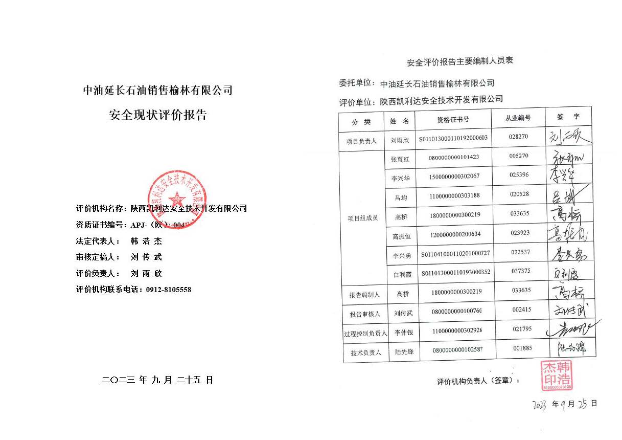 KLDAP-[2023]-2.11-中油延長石油銷售榆林有限公司安全現狀評價-網上公示