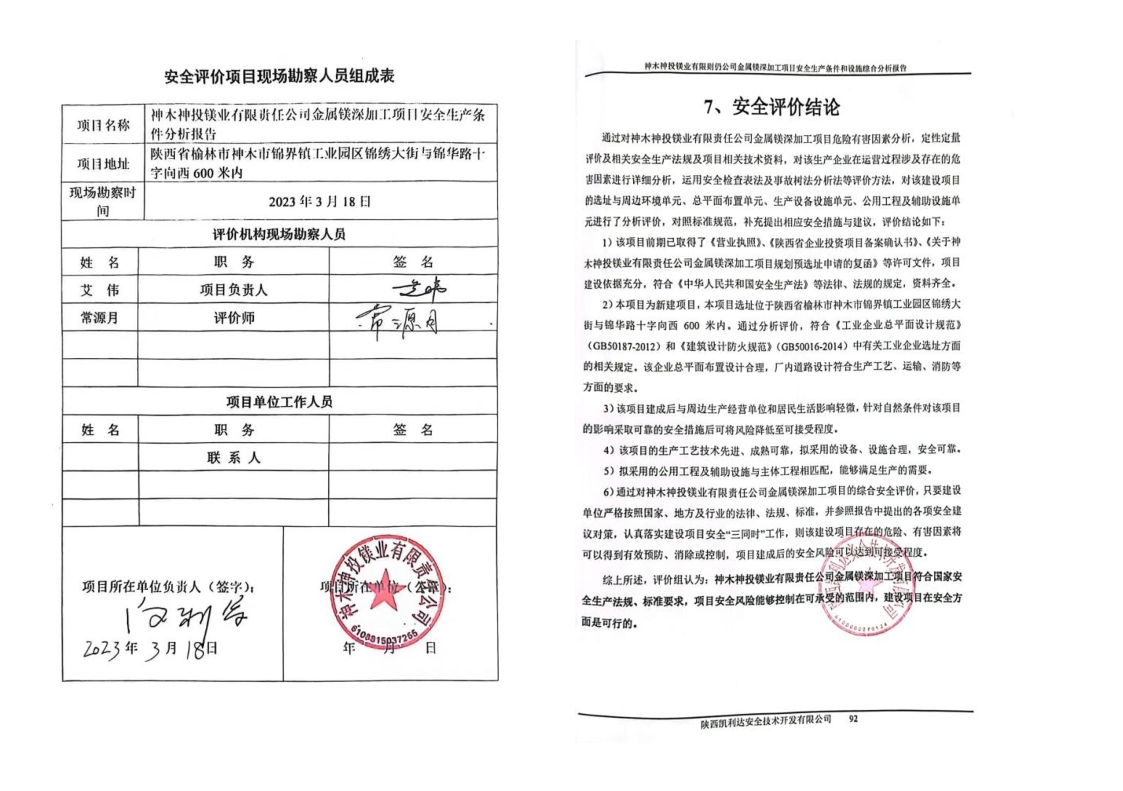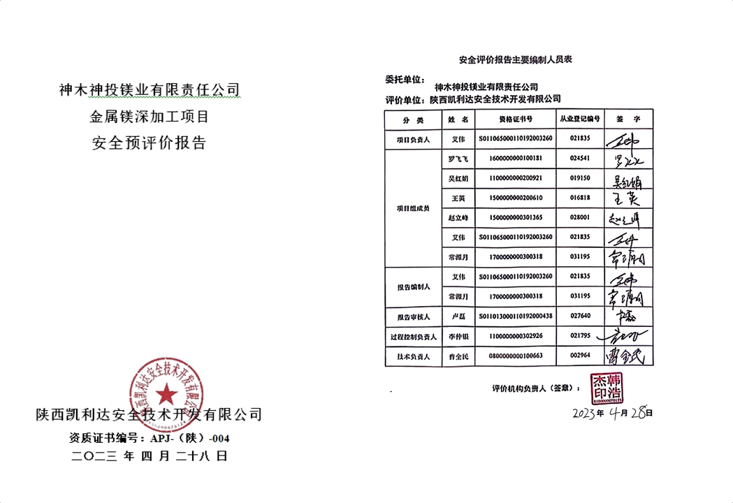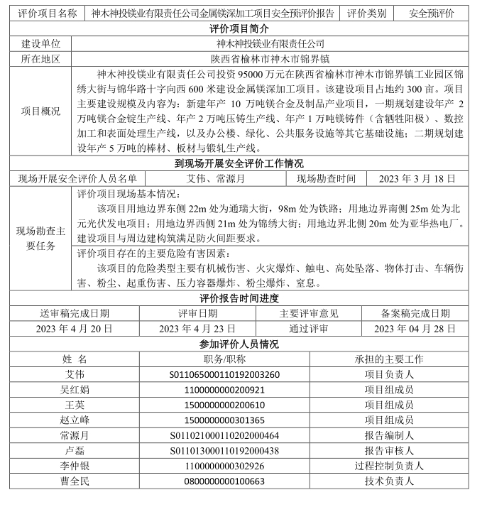 KLDAP[2023]-3.4神木神投鎂業有限責任公司金屬鎂深加工項目安全預評價報告-網上公示