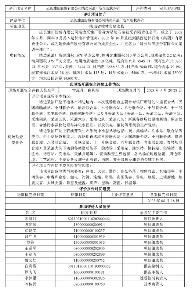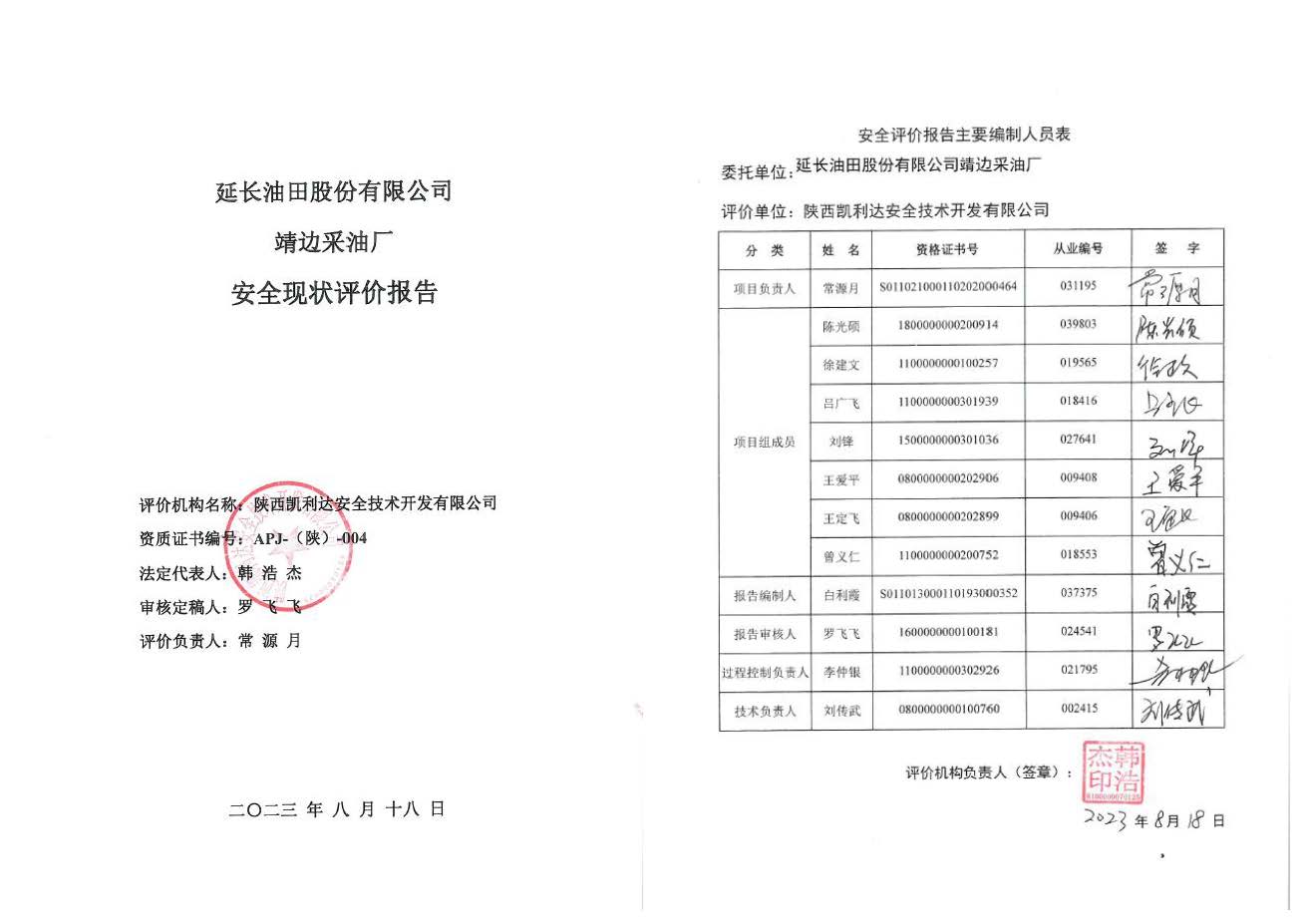 KLDAP[2023]-3.8延長油田股份有限公司靖邊采油廠安全現(xiàn)狀評價--網(wǎng)上公示
