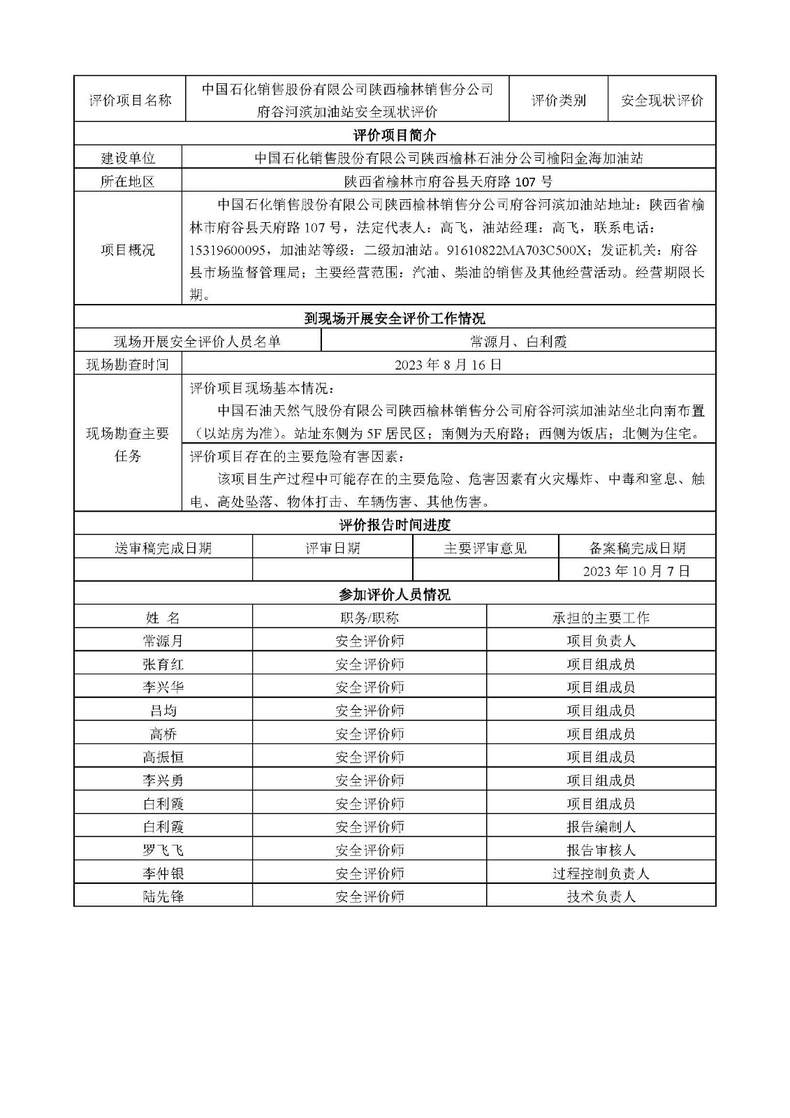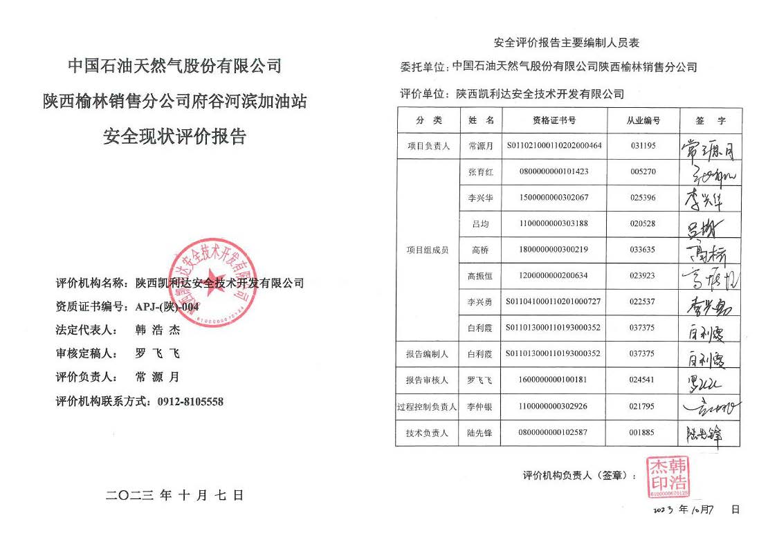 KLDAP[2023]-3.9中國石油天然氣股份有限公司陜西榆林銷售分公司府谷河濱加油站安全現狀評價報告-公示