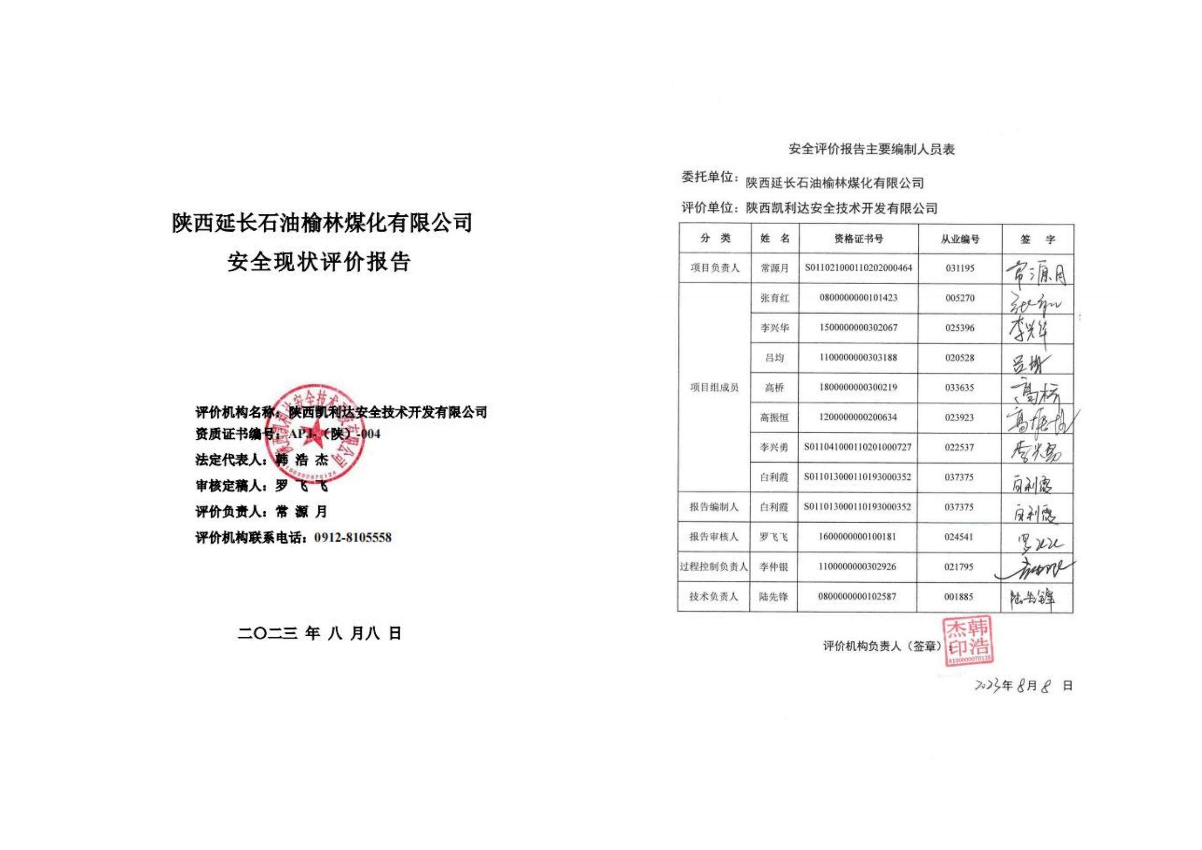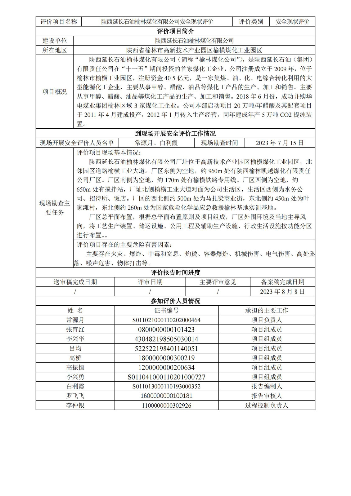 KLDAP[2023]-3.10陜西延長石油榆林煤化有限公司安全現狀評價報告-網上公示