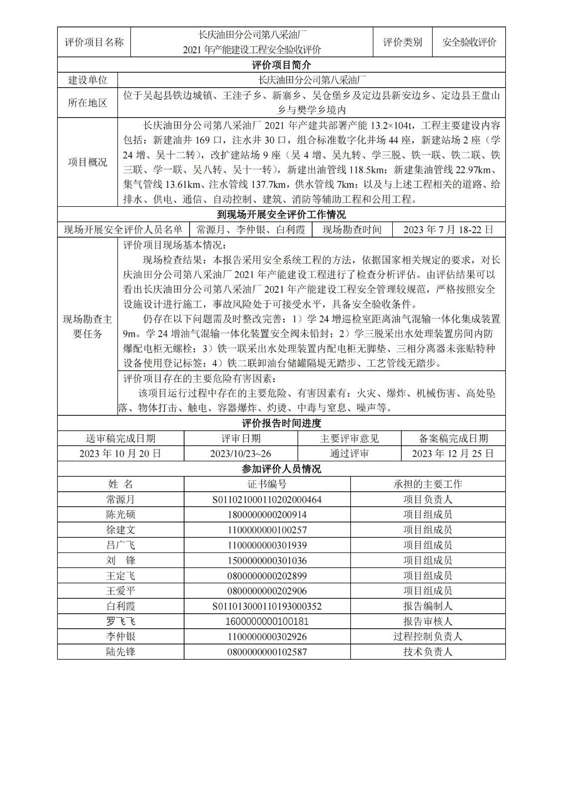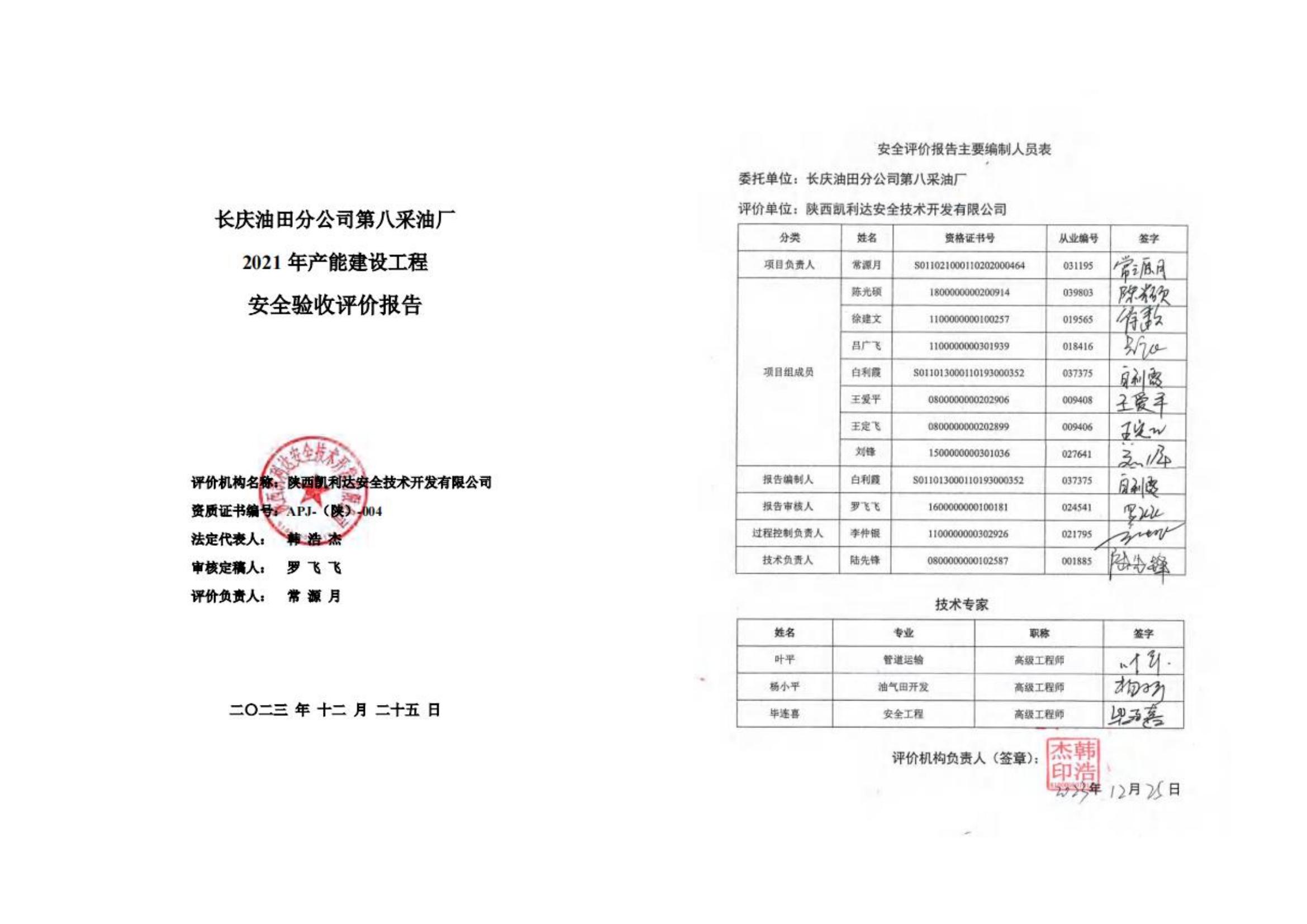 KLDAP[2023]-3.11--長慶油田分公司第八采油廠2021年產能建設工程安全驗收評價報告-網上公示