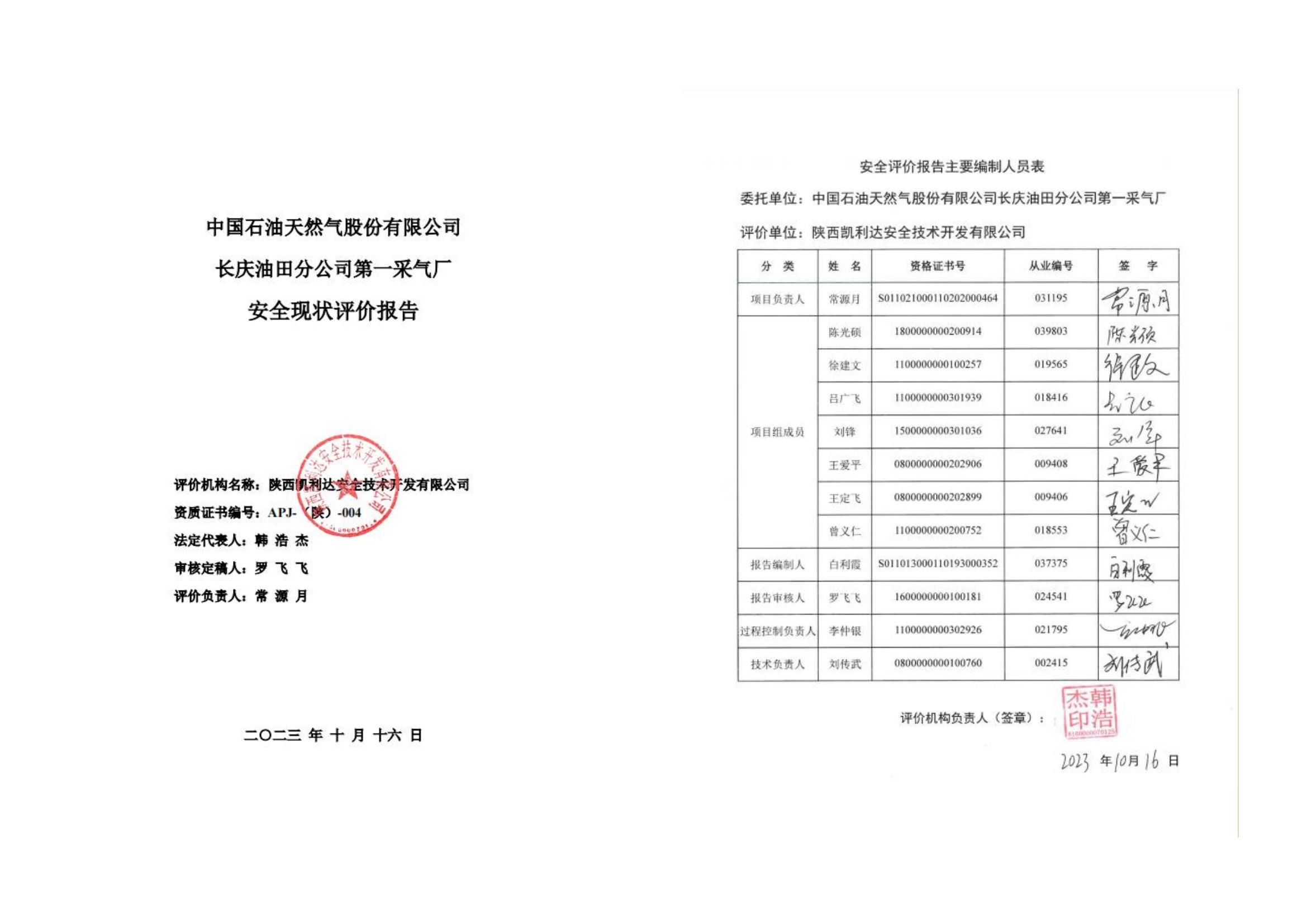 KLDAP[2023]-3.13--長慶油田分公司第一采氣廠安全現(xiàn)狀評價報告-網(wǎng)上公示