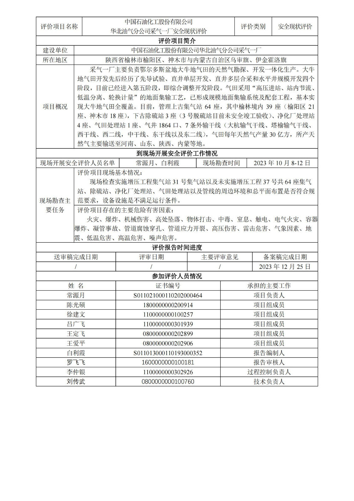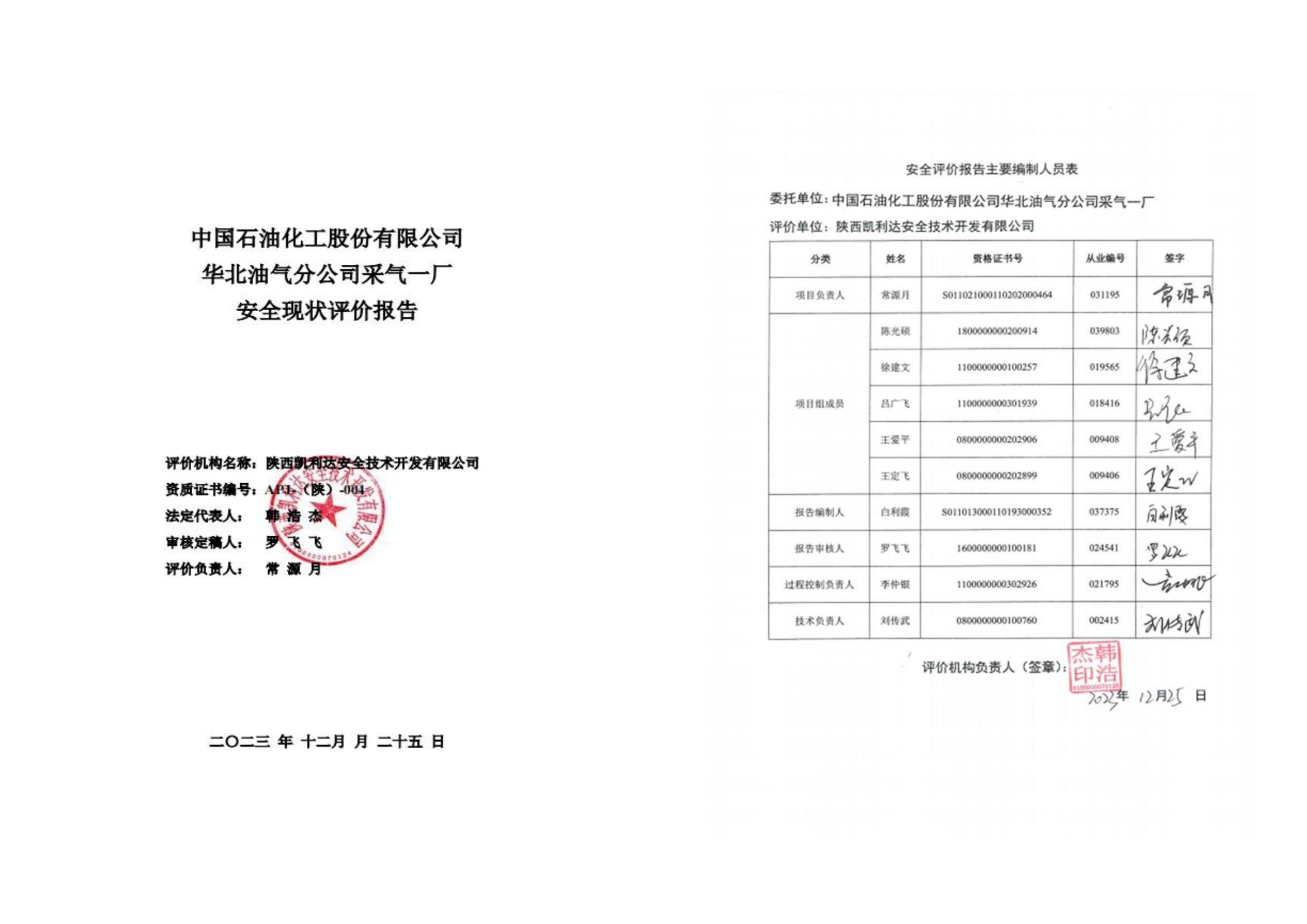 KLDAP[2023]-3.15--華北油氣分公司采氣一廠安全現狀評價報告-網上公示