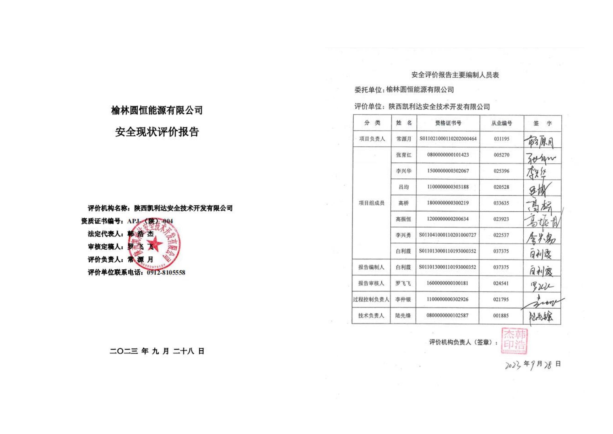 KLDAP[2023]-3.16--榆林圓恒能源有限公司安全現狀評價報告-網上公示
