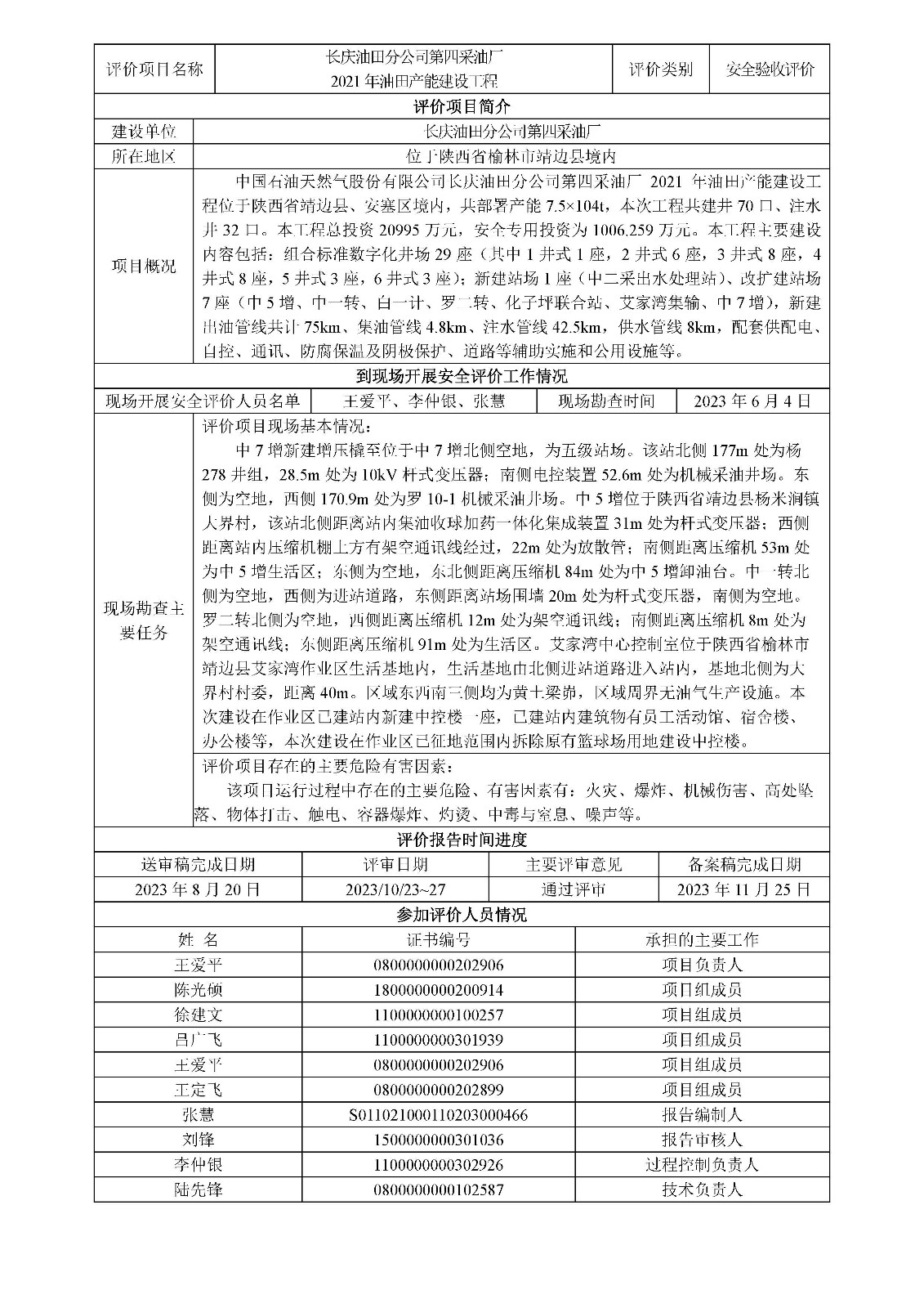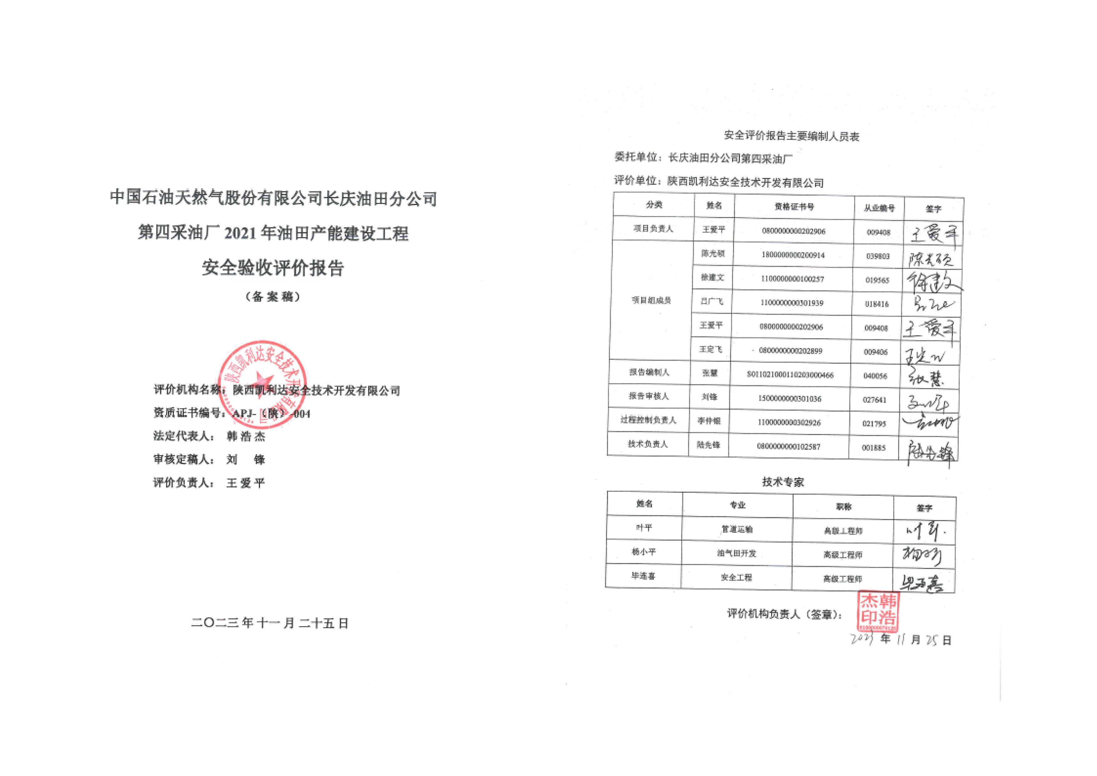KLDAP[2023]-4.8--長慶油田分公司第四采油廠2021年產能建設工程安全驗收評價安全驗收報告公示