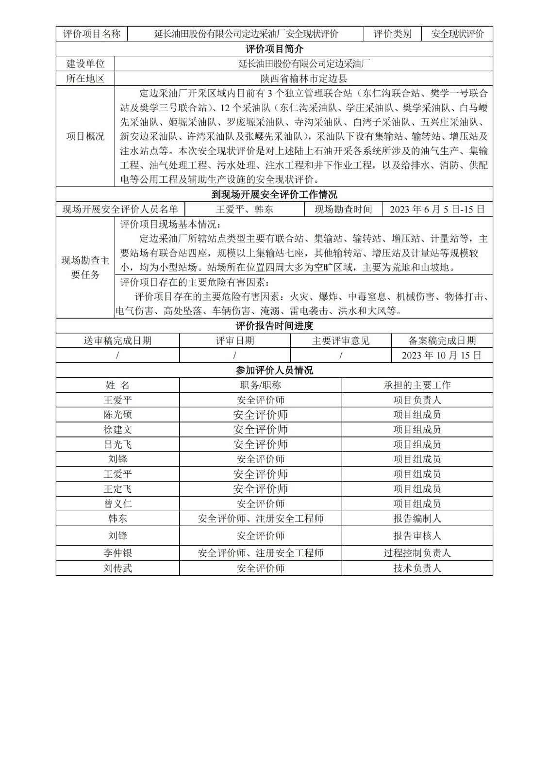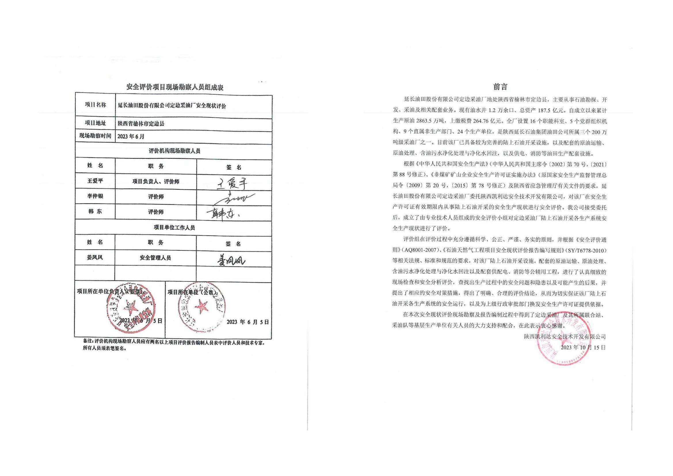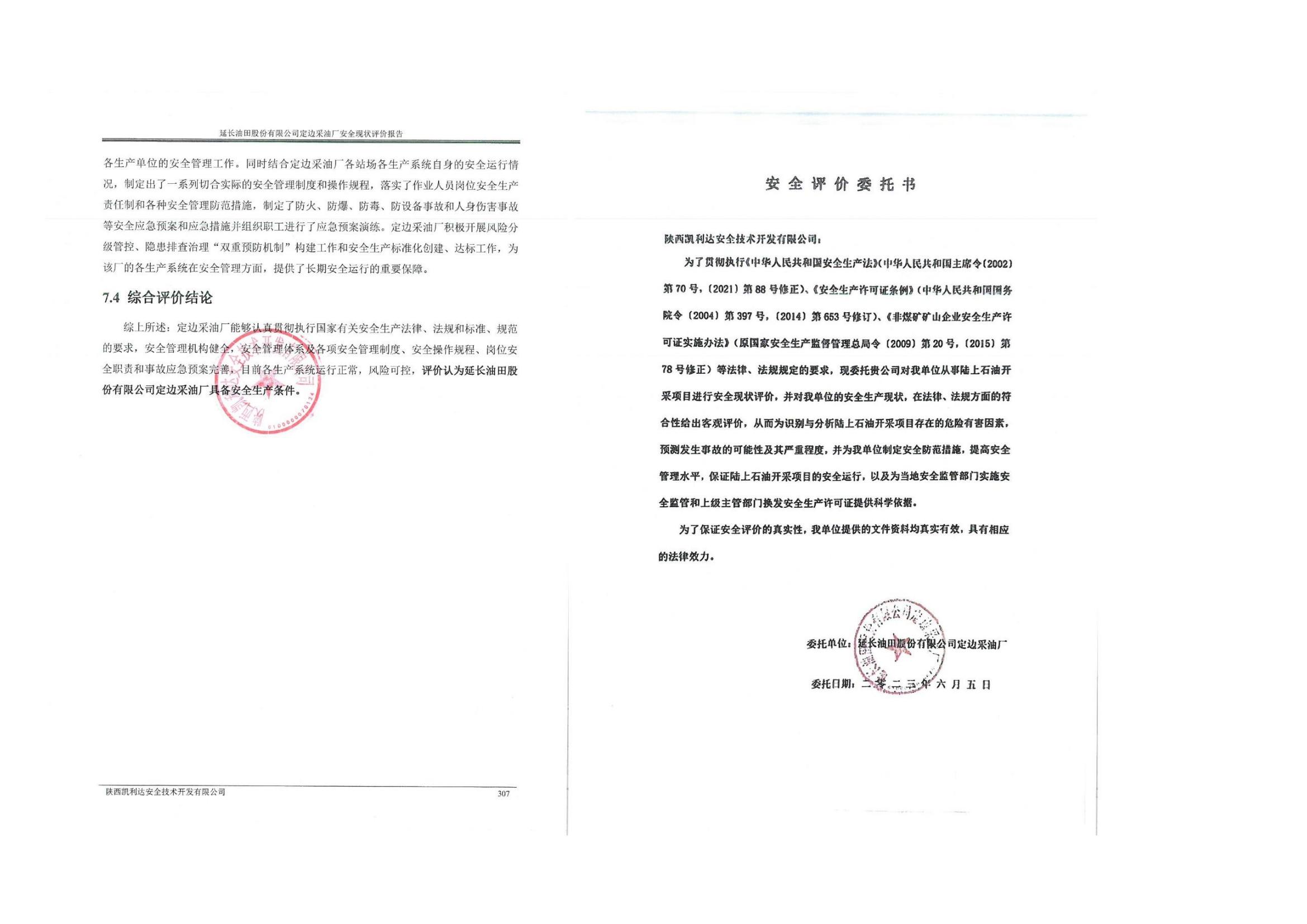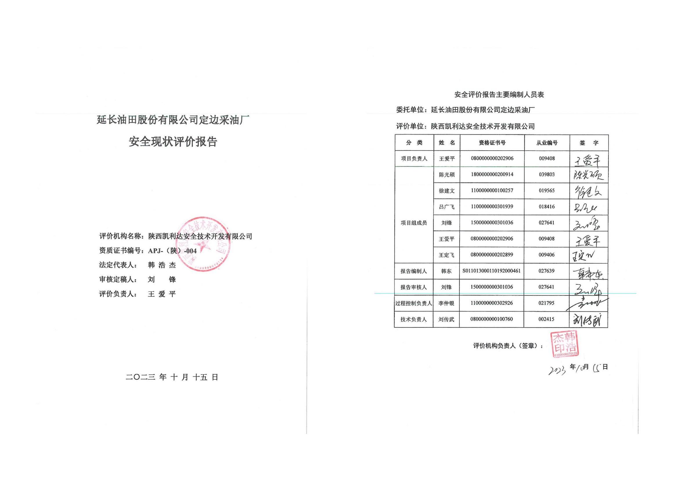 KLDAP[2023]-4.9--延長油田股份有限公司定邊采油廠安全現狀評價報告-網上公示