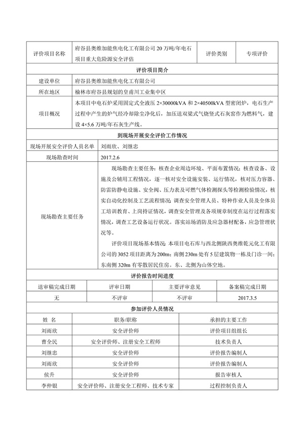 府谷縣奧維加能焦電化工有限公司20萬噸年電石項目重大危險源安全