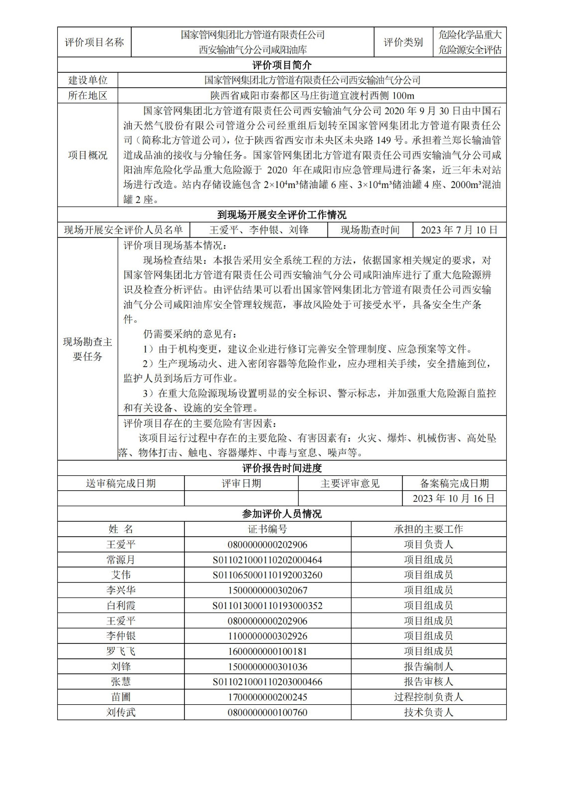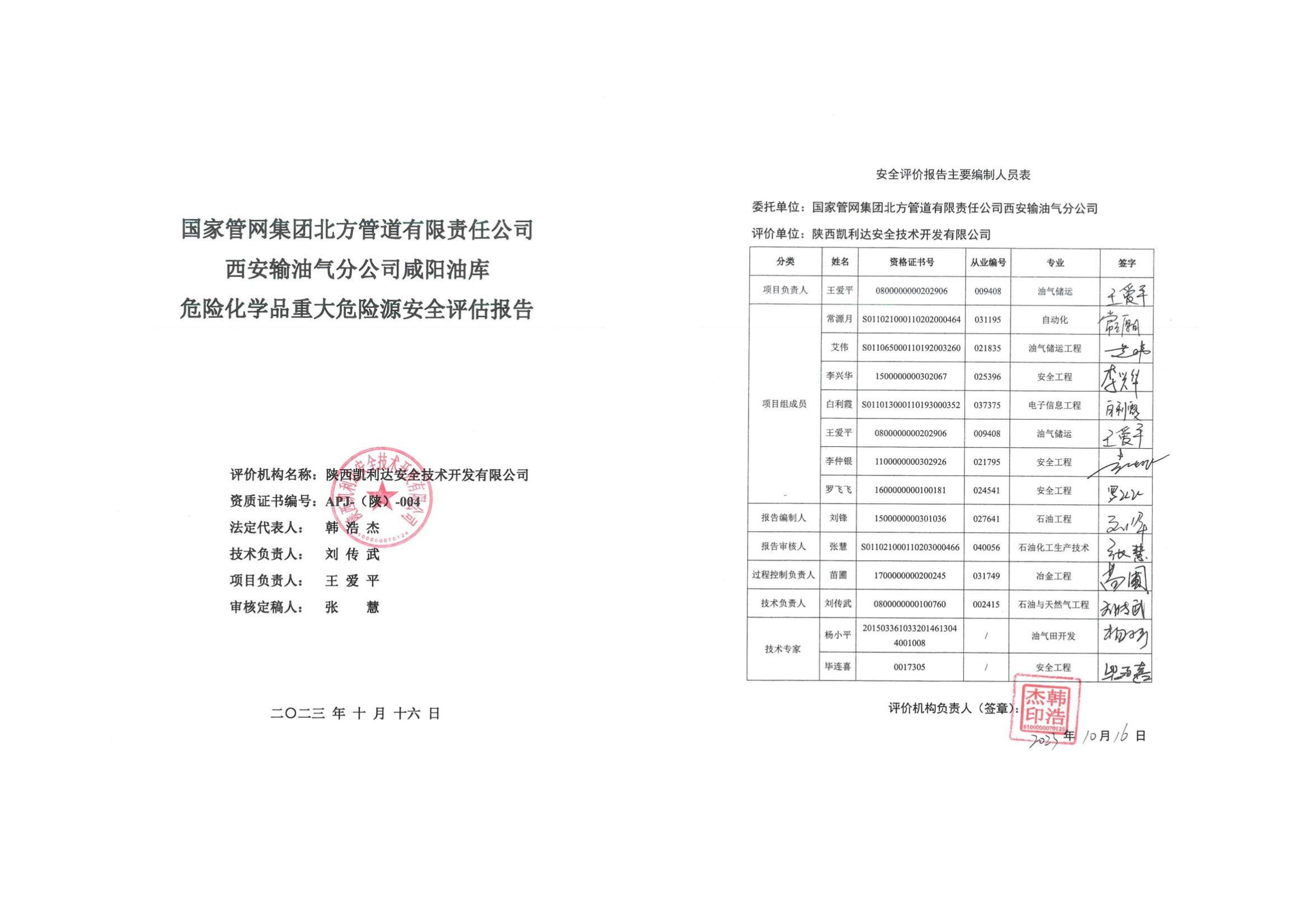 KLDAP[2023]-4.12--國家管網集團北方管道有限責任公司西安輸油氣分公司咸陽作業區重大危險源評估報告-網上公示