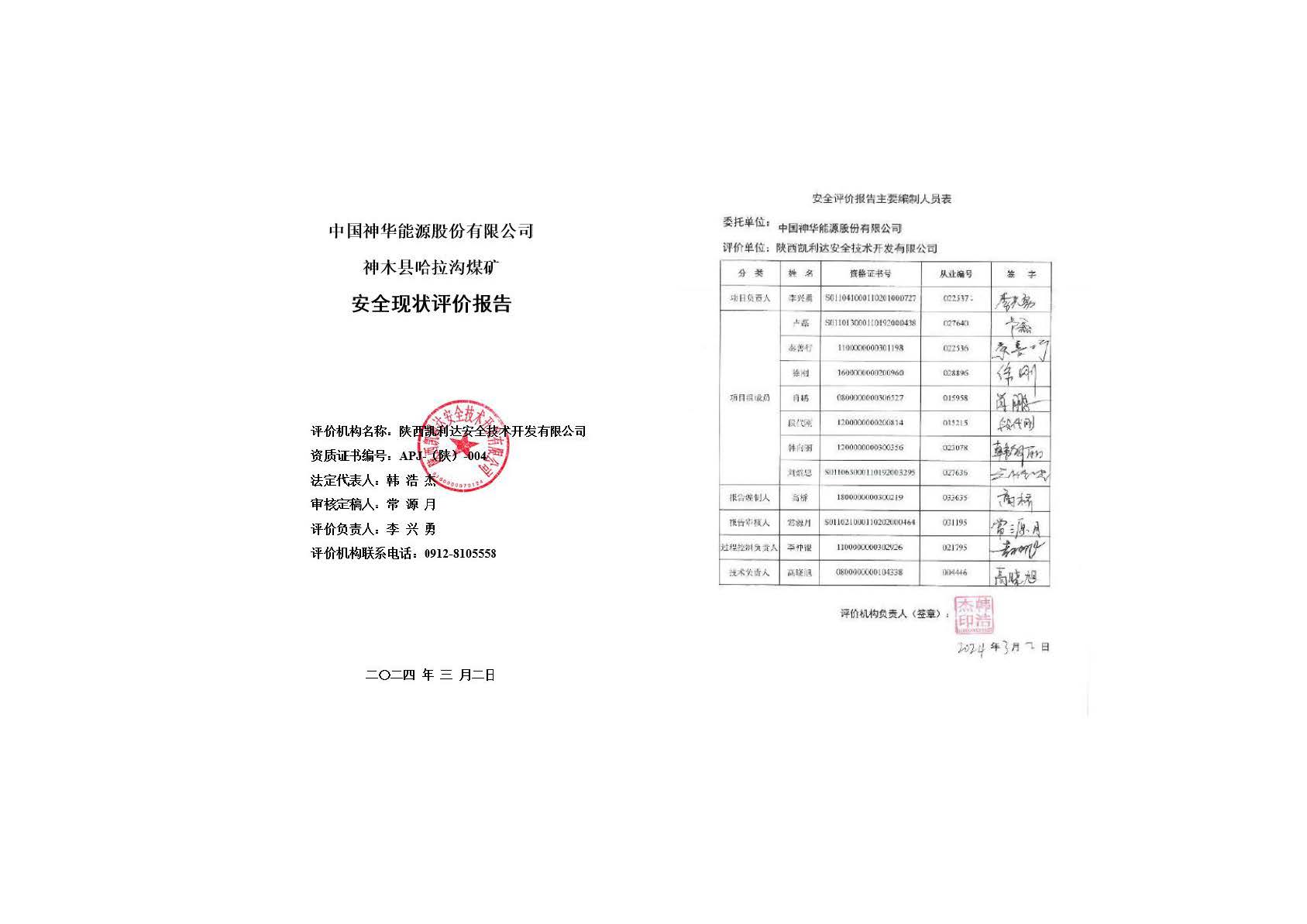 KLDAP[2024]-煤炭-現-01 中國神華能源股份有限公司神木縣哈拉溝煤礦安全現狀評價