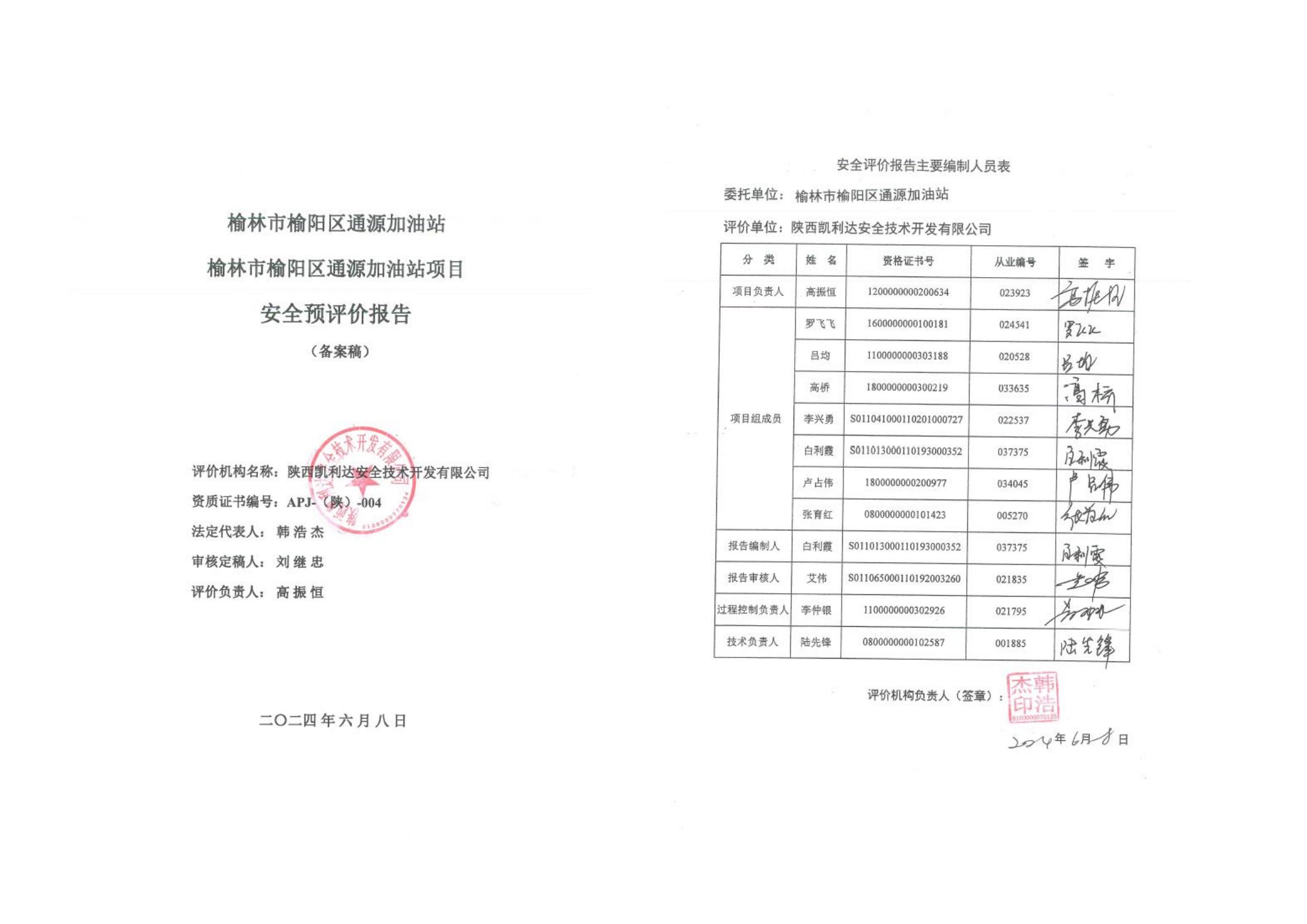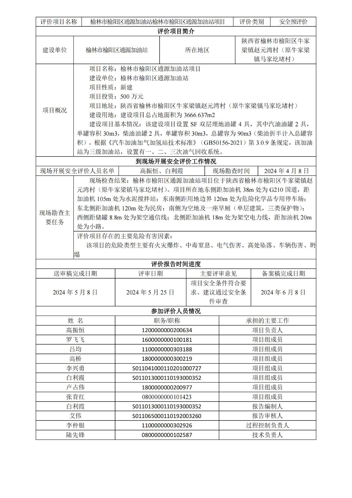 KLDAP[2024]-3.3 榆林市榆陽區(qū)通源加油站榆林市榆陽區(qū)通源加油站項目安全預評價