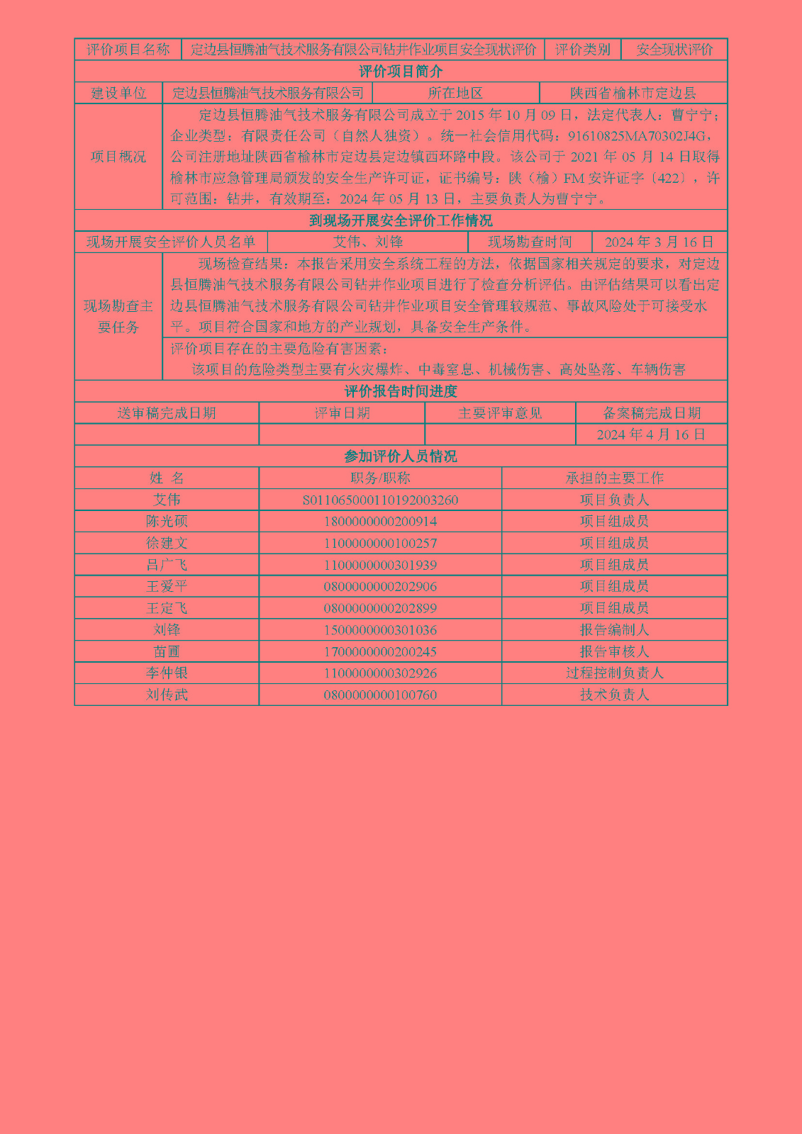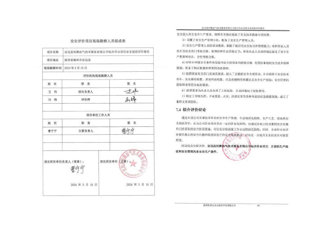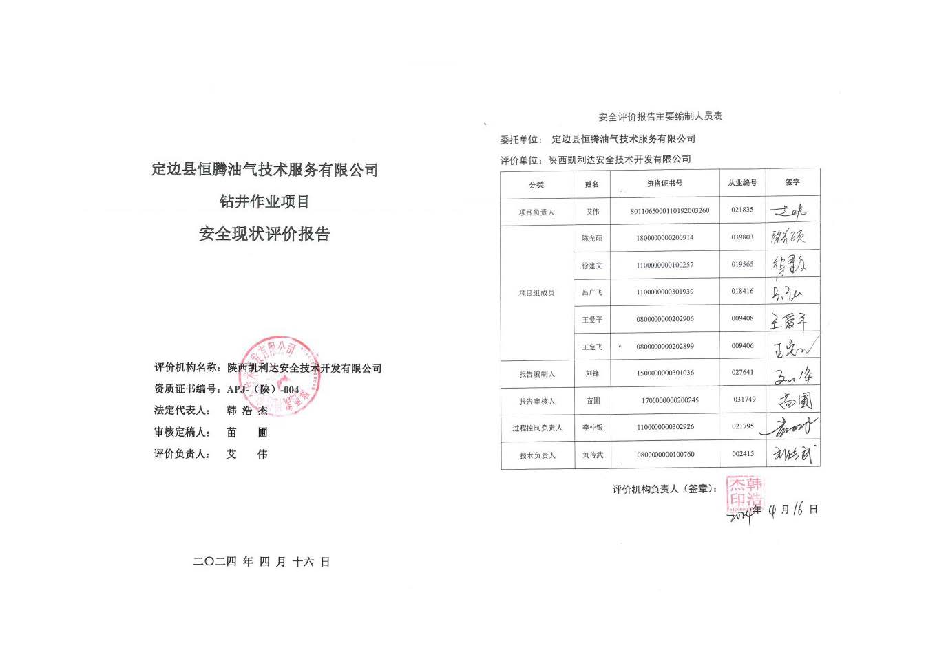 KLDAP[2024]-1.6 定邊縣恒騰油氣技術服務有限公司鉆井作業項目安全現狀評價