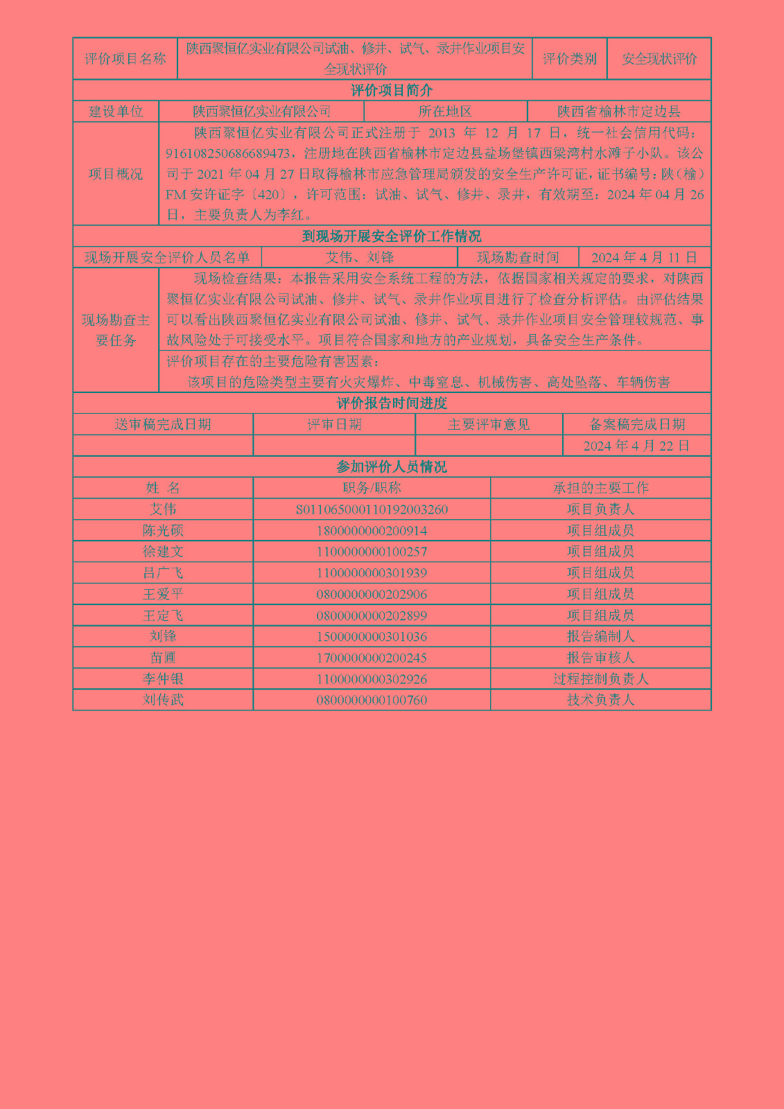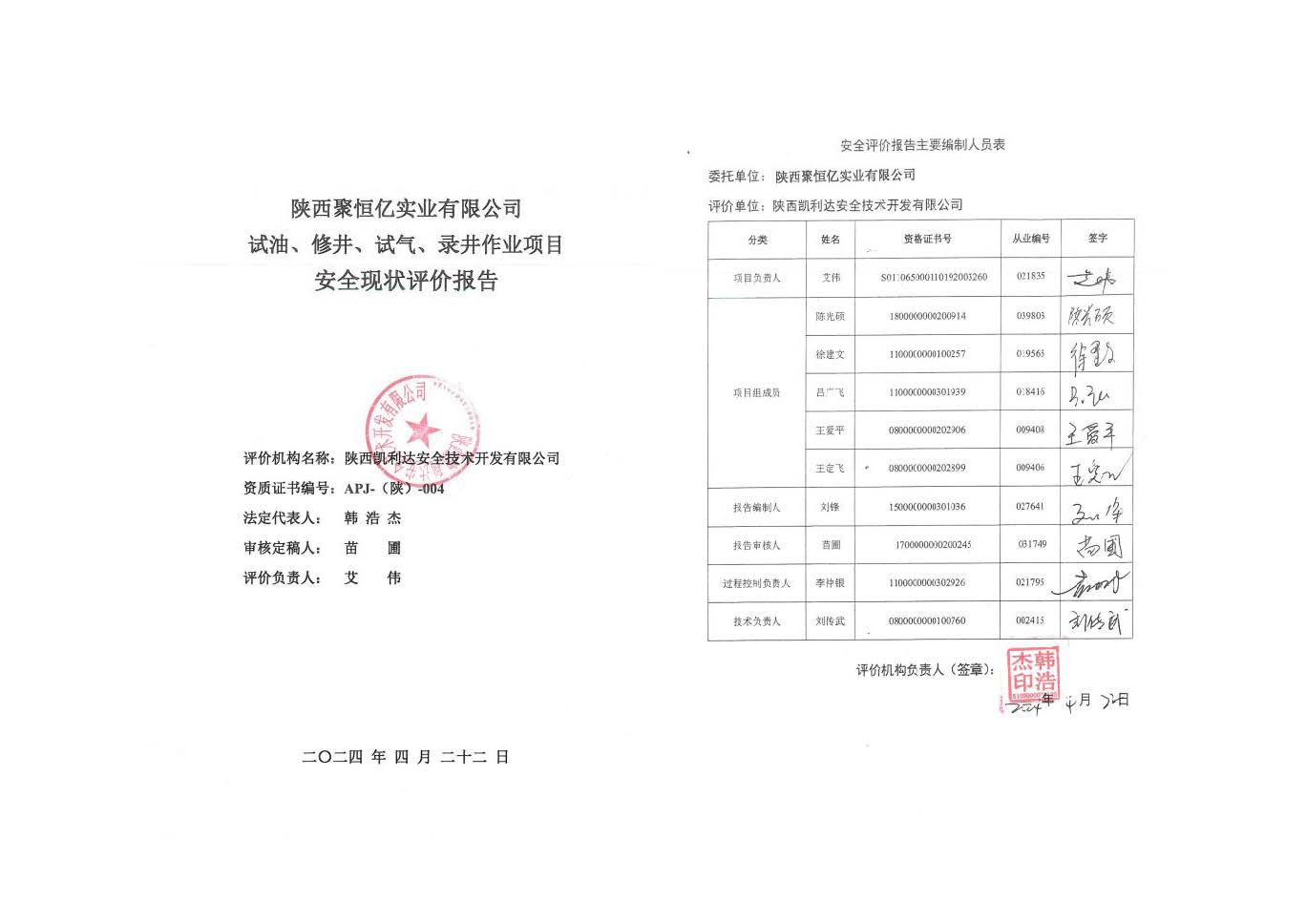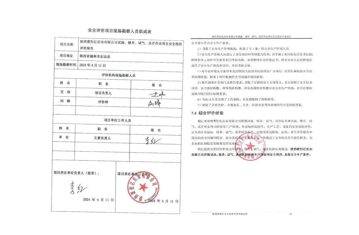 KLDAP[2024]-1.8 陜西聚恒億實業有限公司試油、修井、試氣、錄井作業項目安全現狀評價