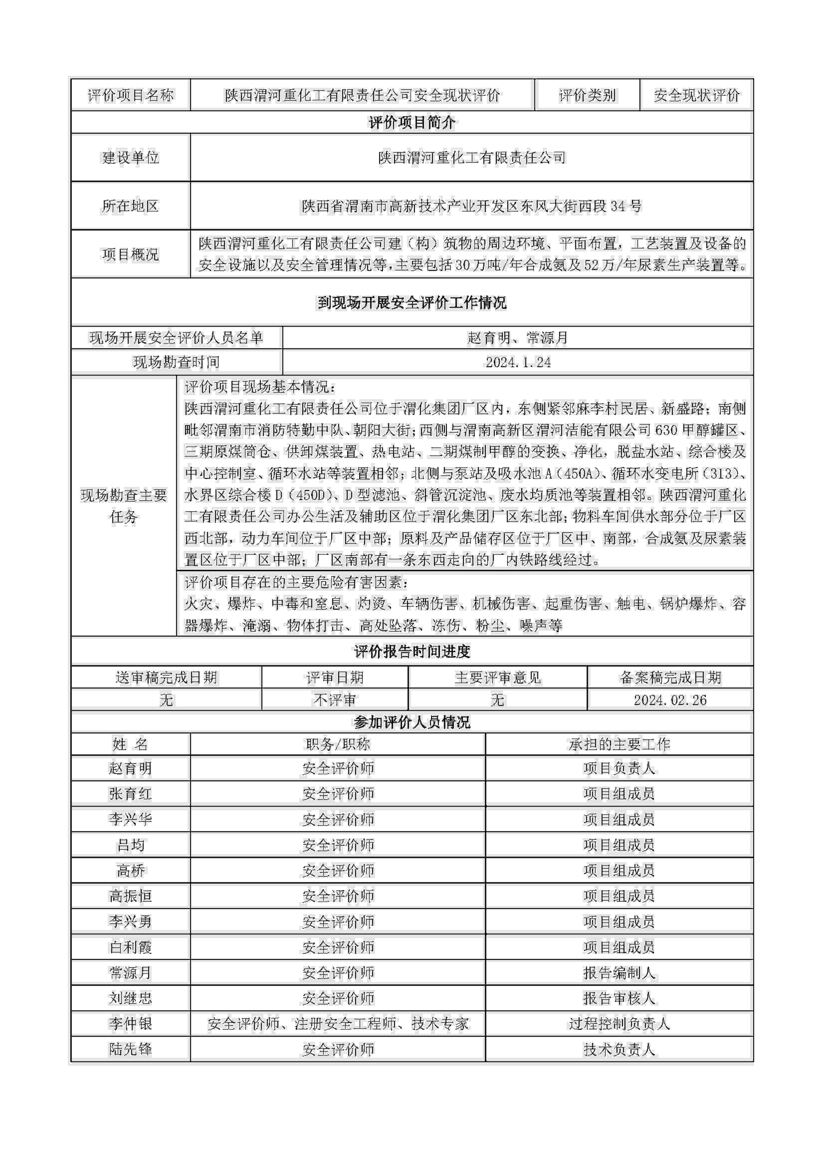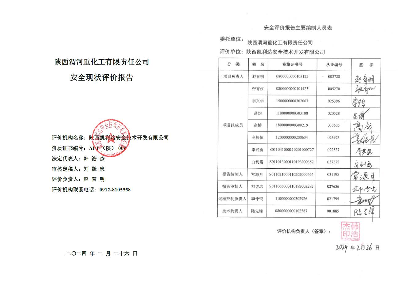 KLDAP[2024]-2.4 陜西渭河重化工有限責任公司安全現狀評價