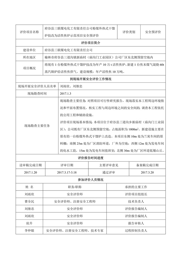 府谷縣三聯煤電化工有限責任公司粉煤外熱式干餾爐技改為活性焦爐