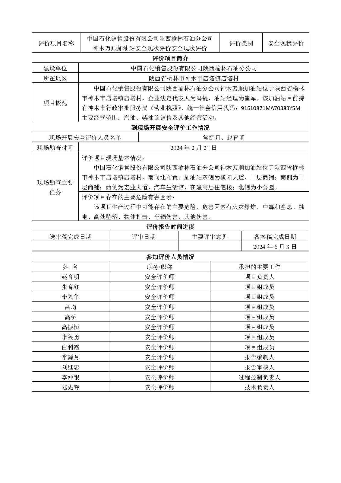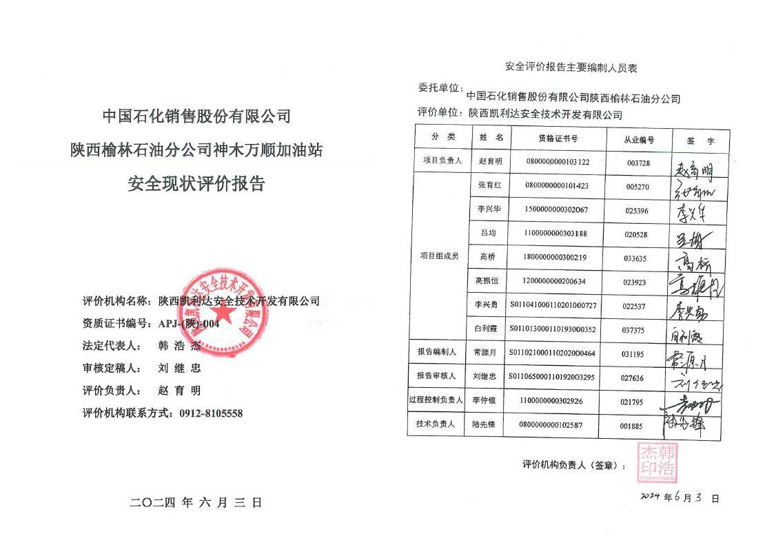 KLDAP[2024]-2.2 中國石化銷售股份有限公司陜西榆林石油分公司神木萬順加油站安全現狀評價