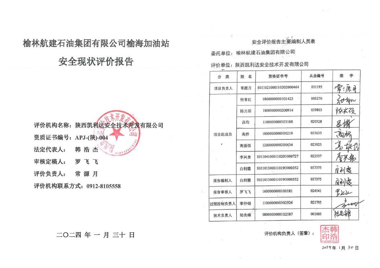 KLDAP[2024]-2.1 榆林航建石油集團(tuán)有限公司榆海加油站安全現(xiàn)狀評(píng)價(jià)
