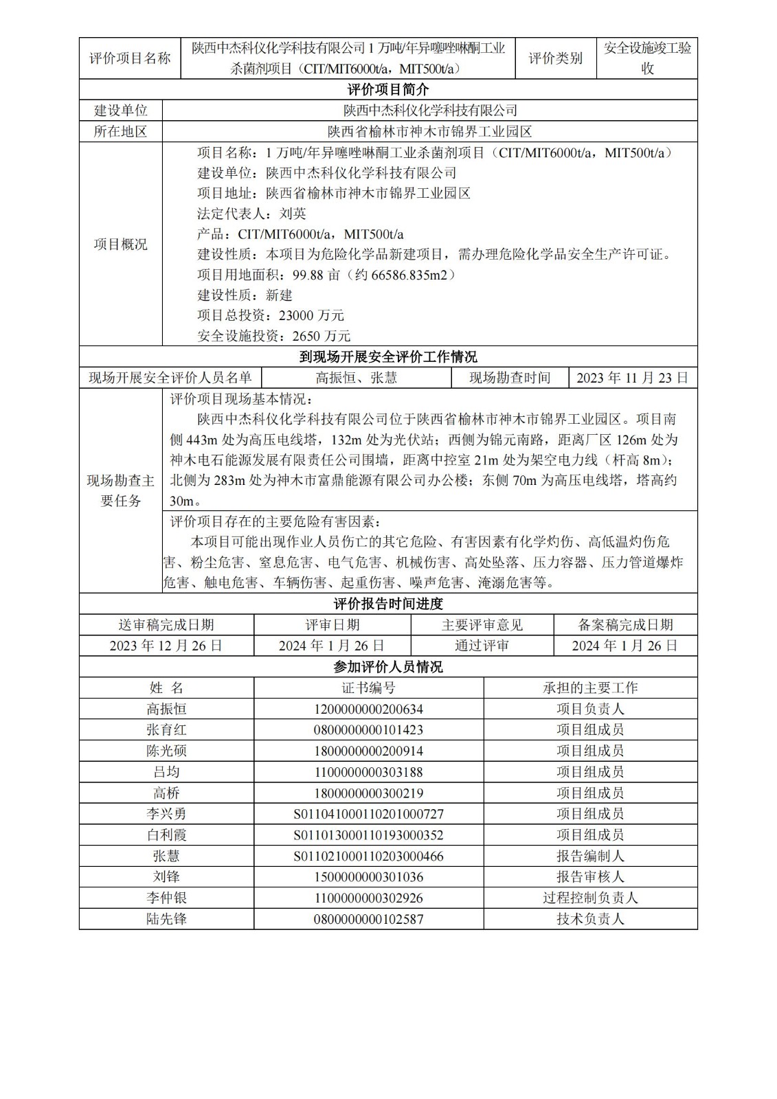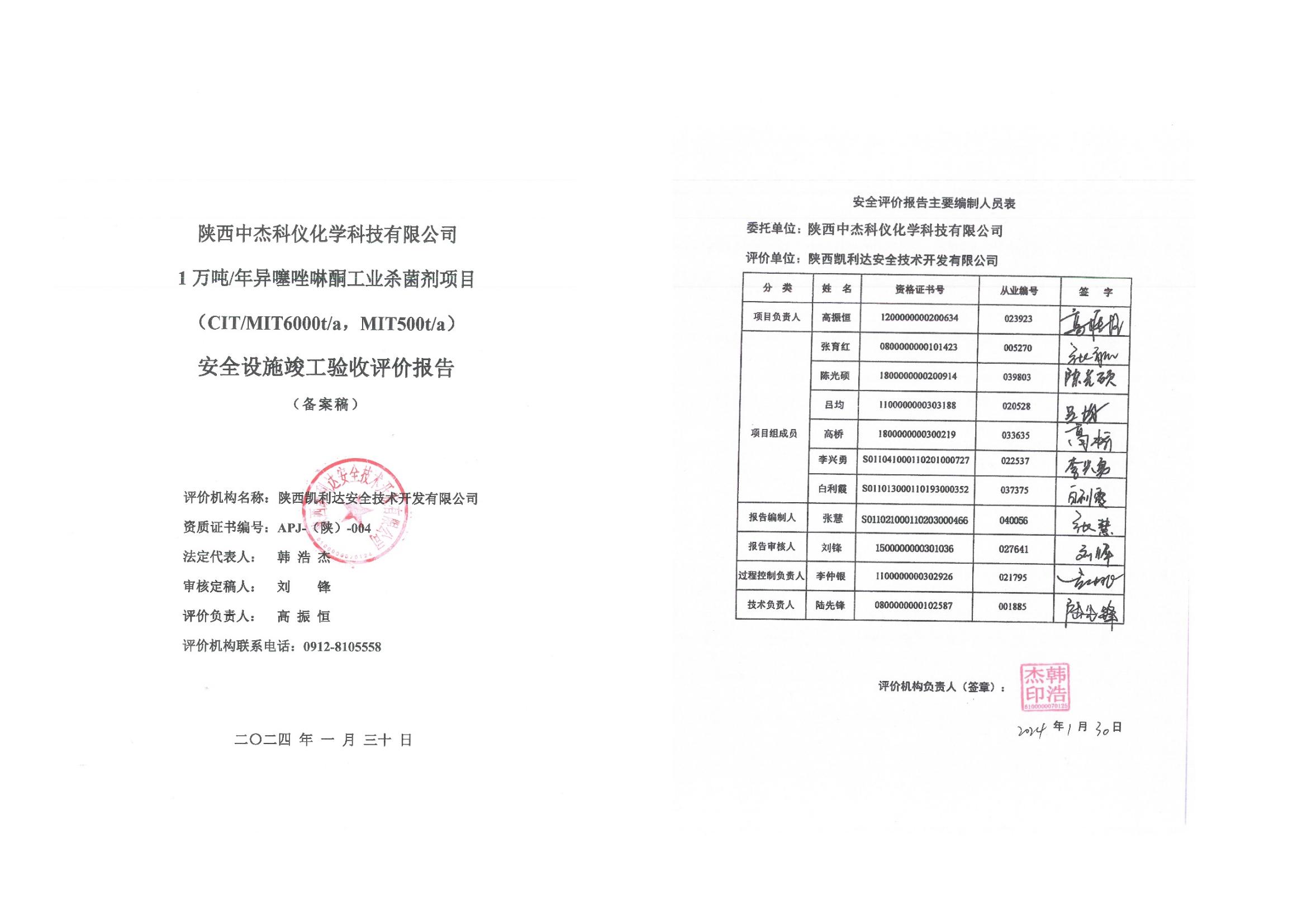 KLDAP[2023]-4.14 陜西中杰科儀化學(xué)科技有限公司1萬噸年異噻唑啉酮工業(yè)殺菌劑項目(CITMIT6000ta,MIT500ta)安全設(shè)施竣工驗收評價