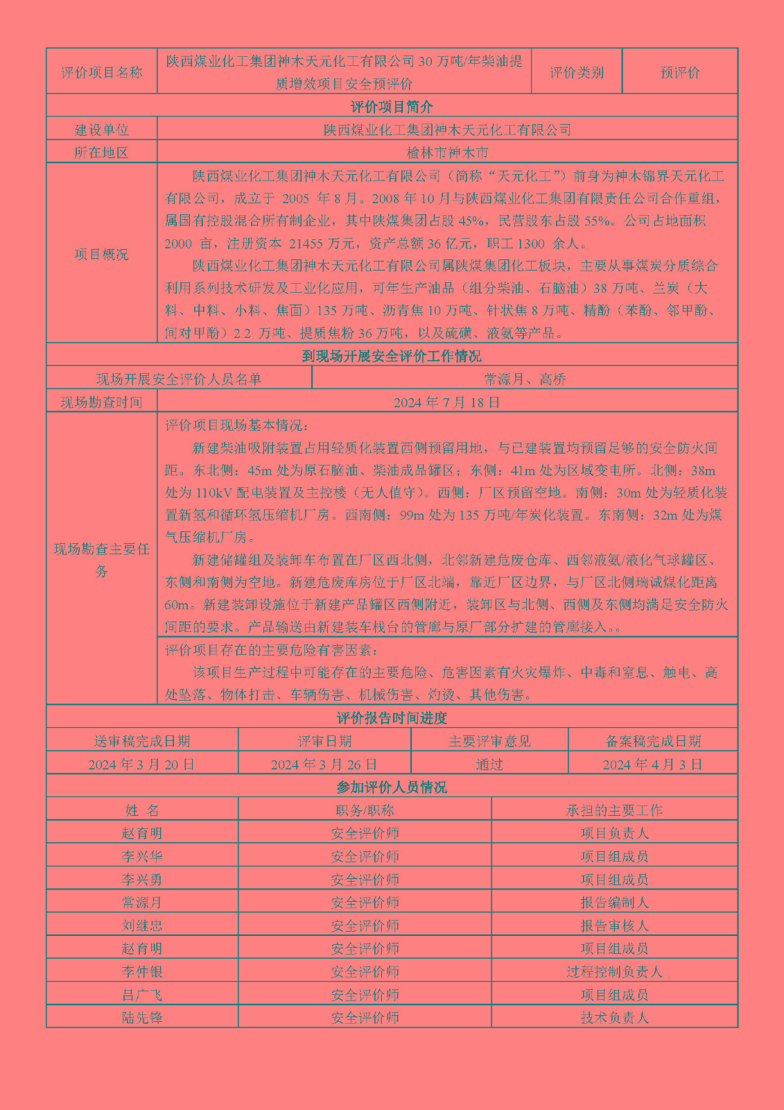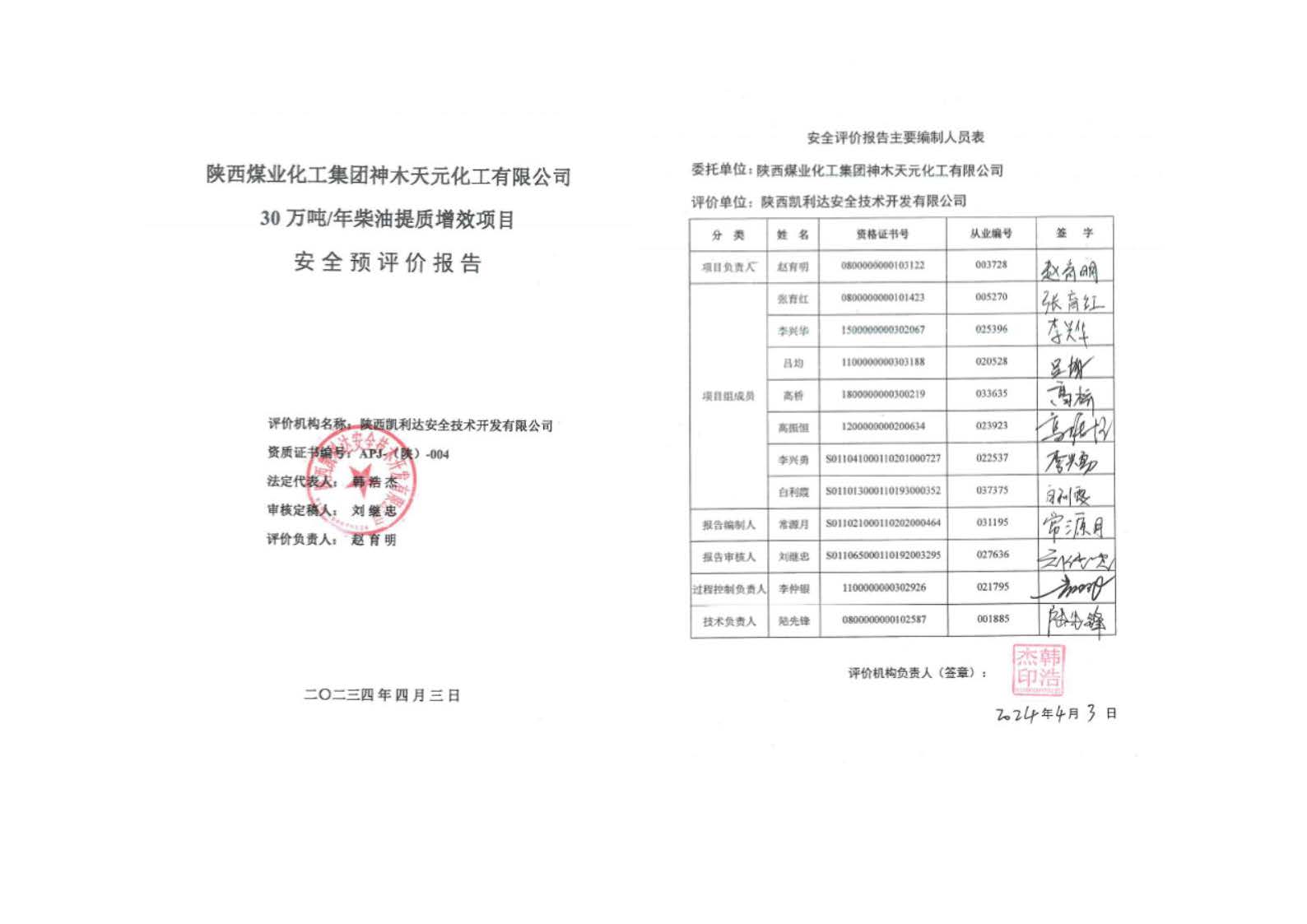 KLDAP[2024]-2.11陜西煤業化工集團神木天元化工有限公司30萬噸年柴油提質增效項目安全預評價