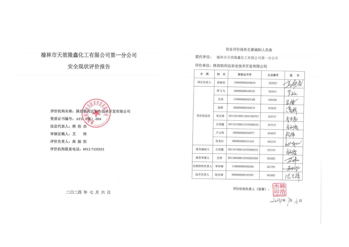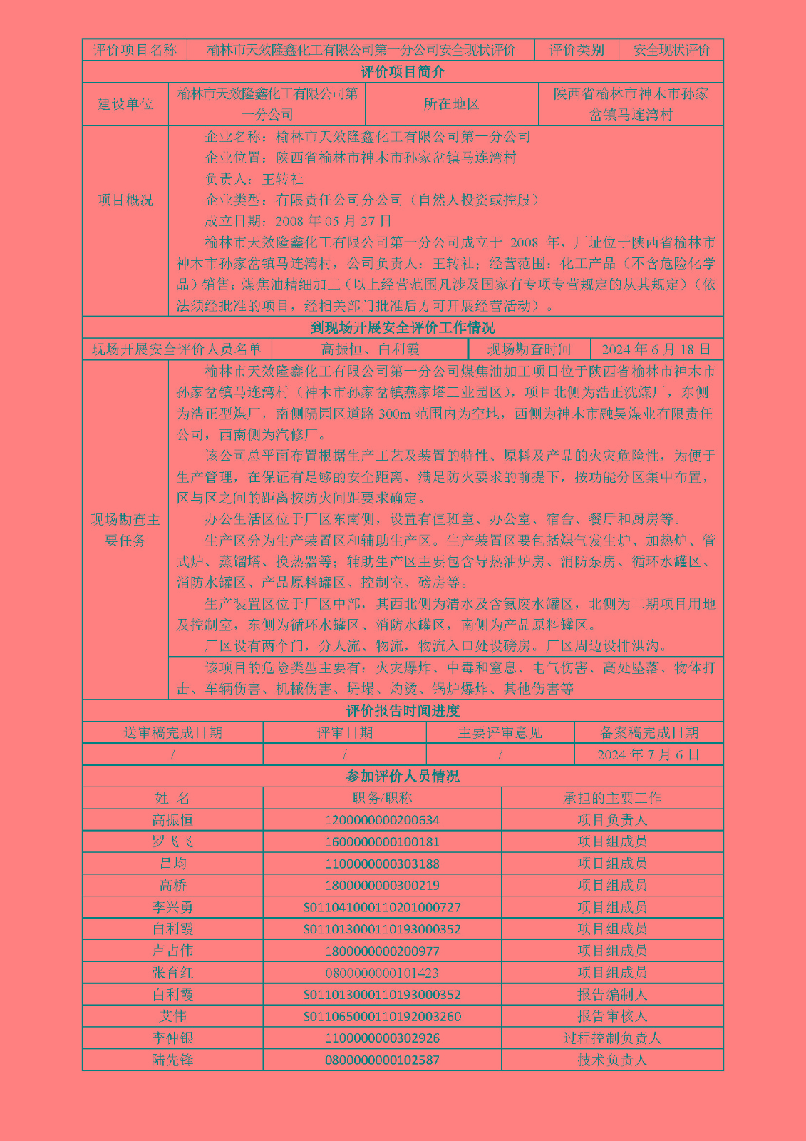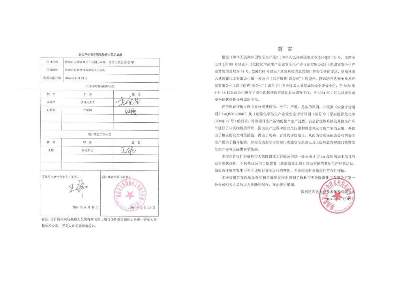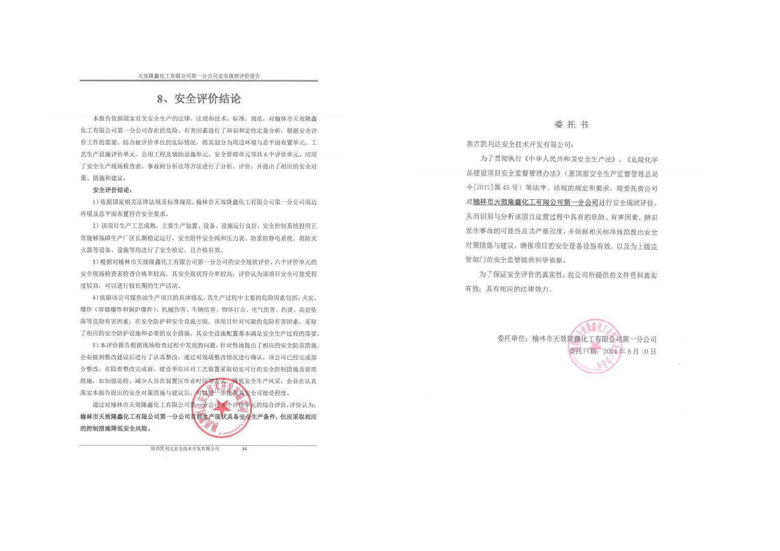 KLDAP[2024]-3.10榆林市天效隆鑫化工有限公司第一分公司安全現狀評價報告
