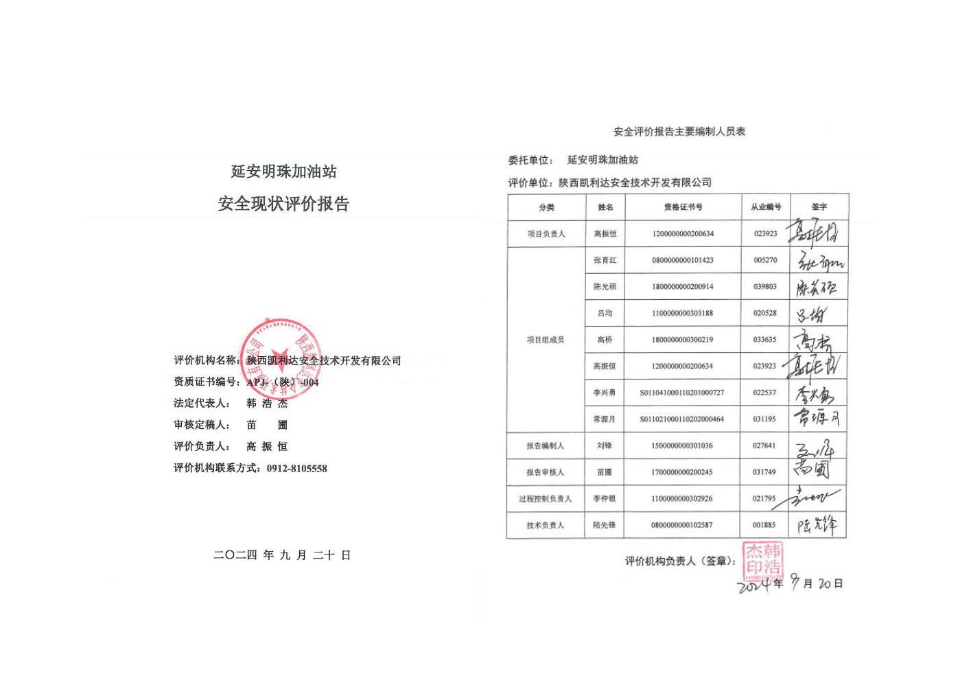 KLDAP[2024]-1.14 延安明珠加油站安全現狀評價