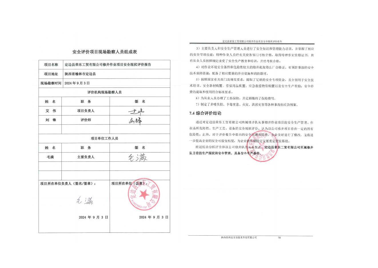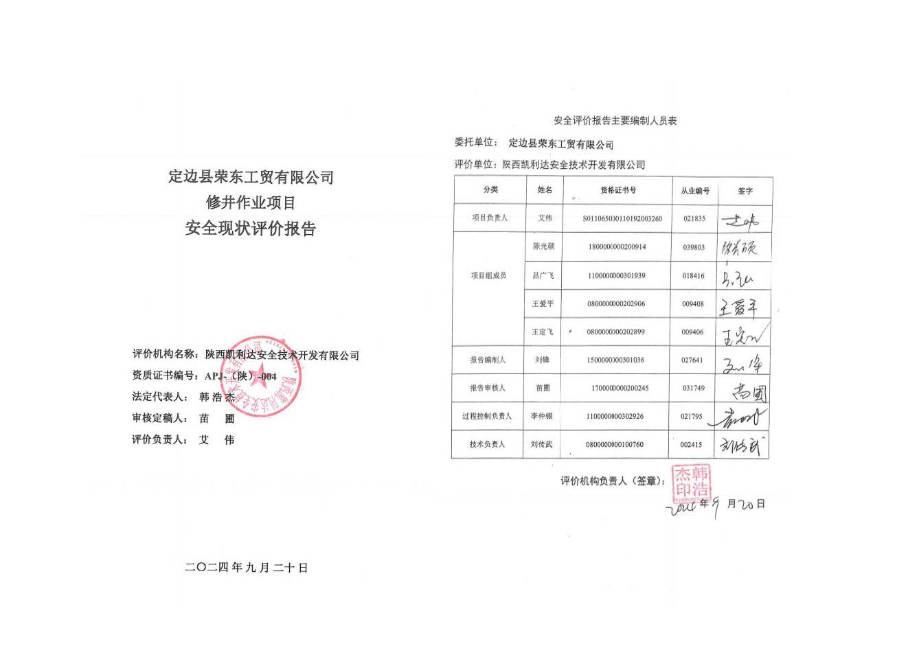 KLDAP[2024]-1.20定邊縣榮東修井安全現(xiàn)狀評價