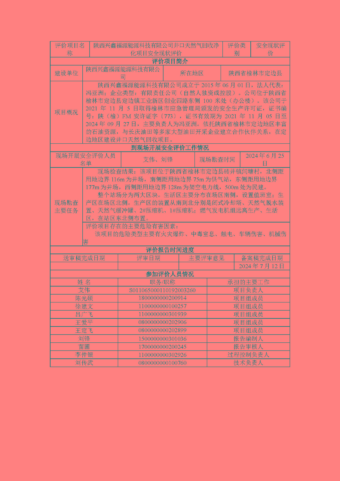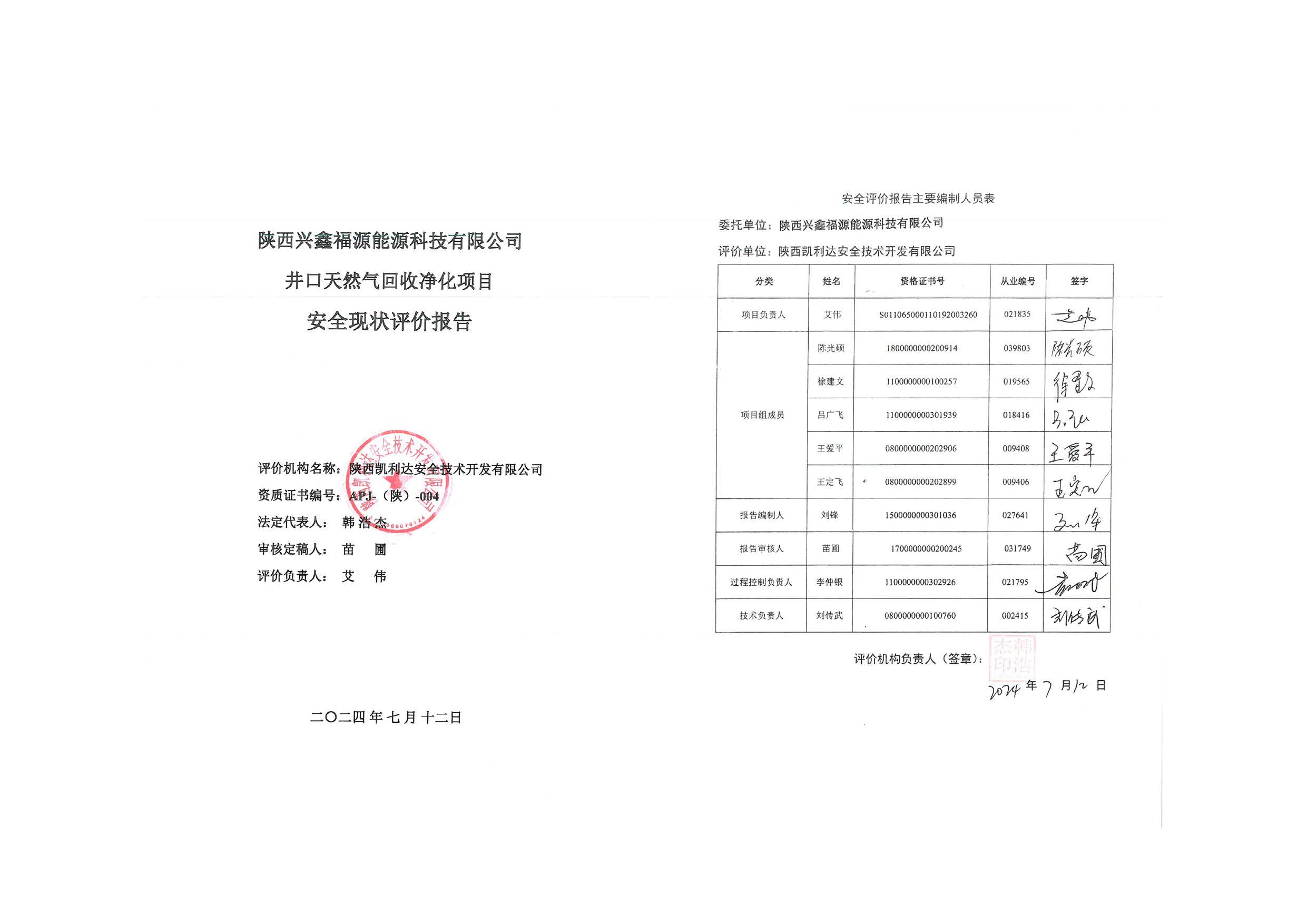 KLDAP[2024]-1.13陜西興鑫福源能源科技有限公司井口天然氣回收凈化項目安全現狀評價報告