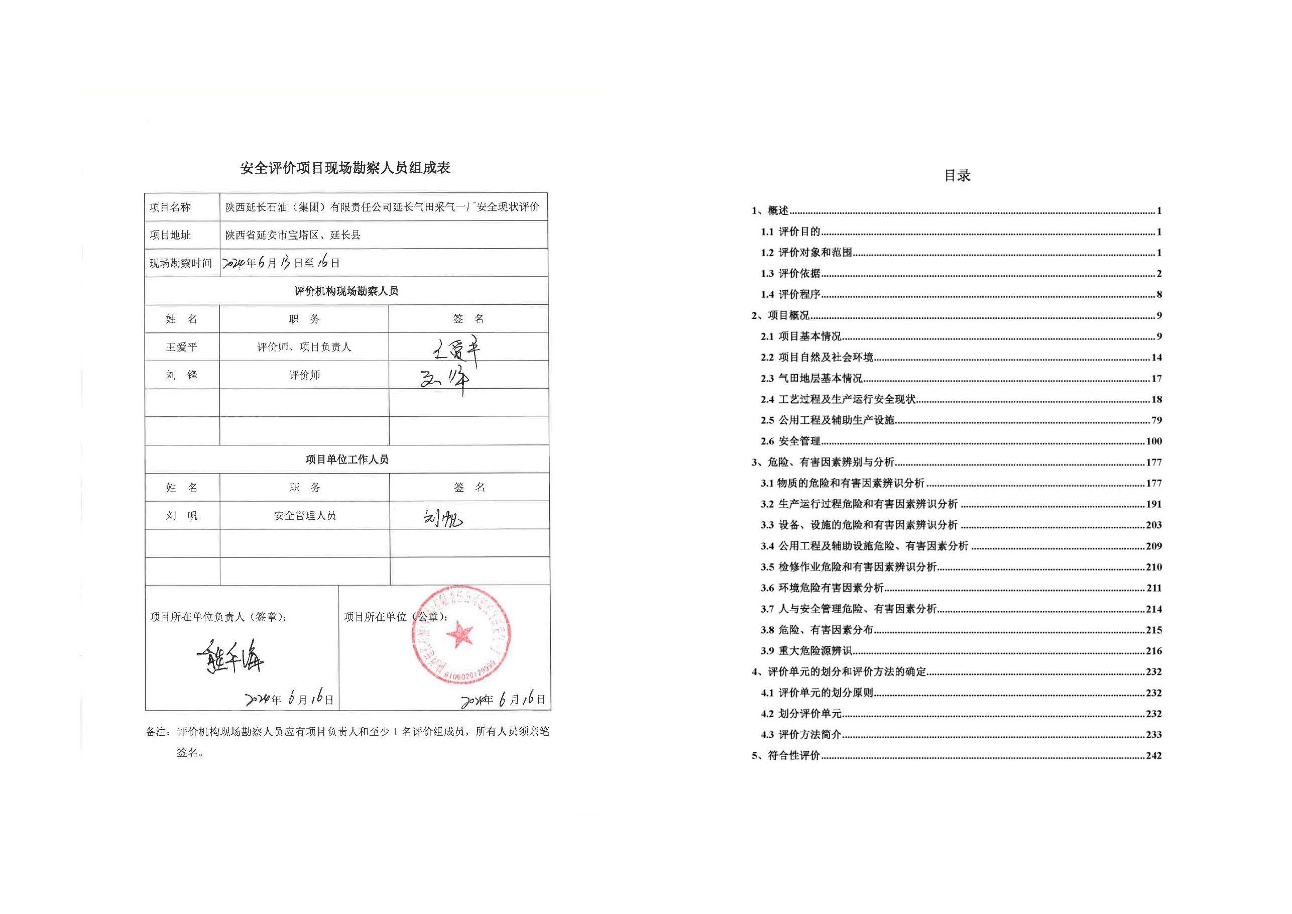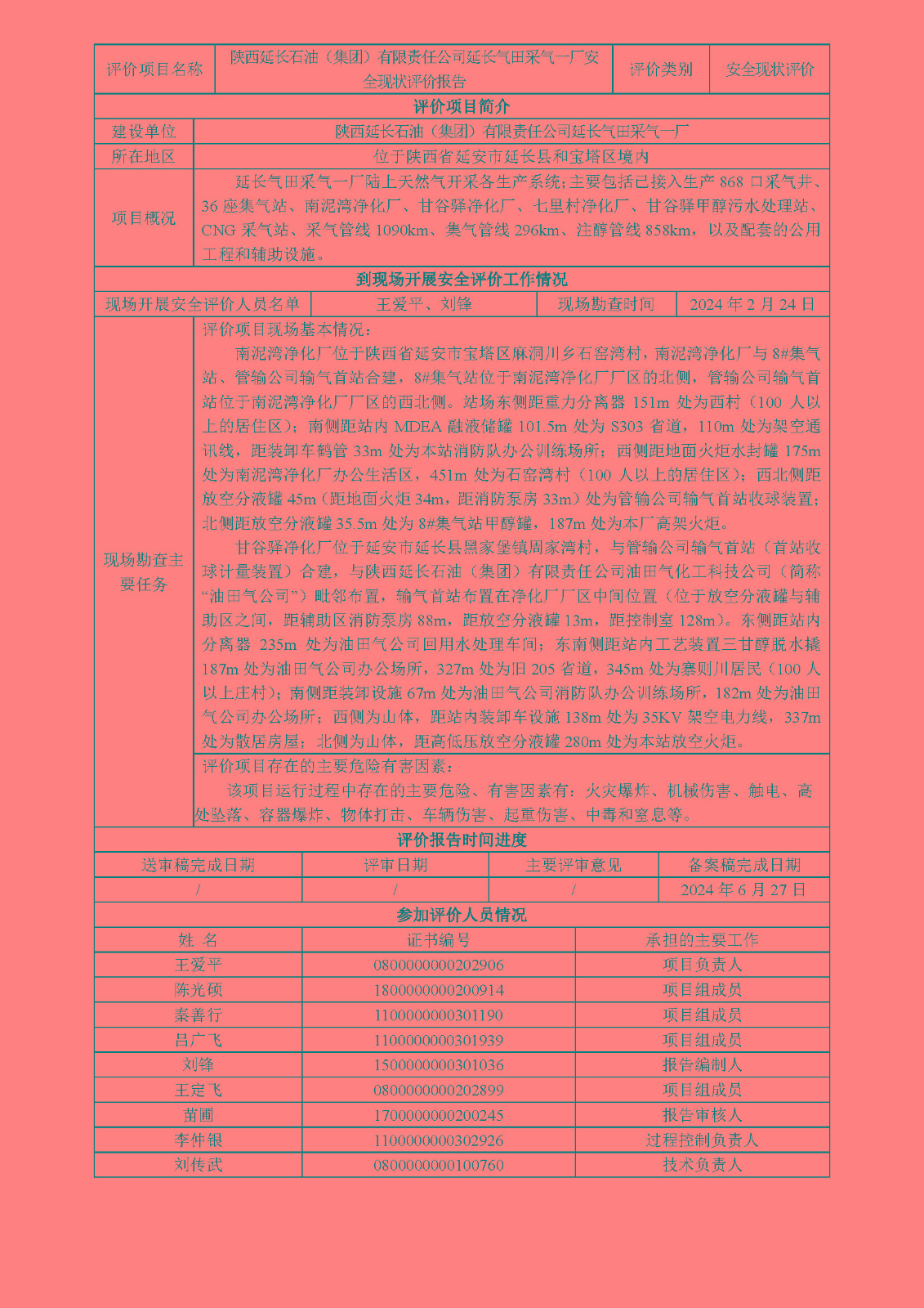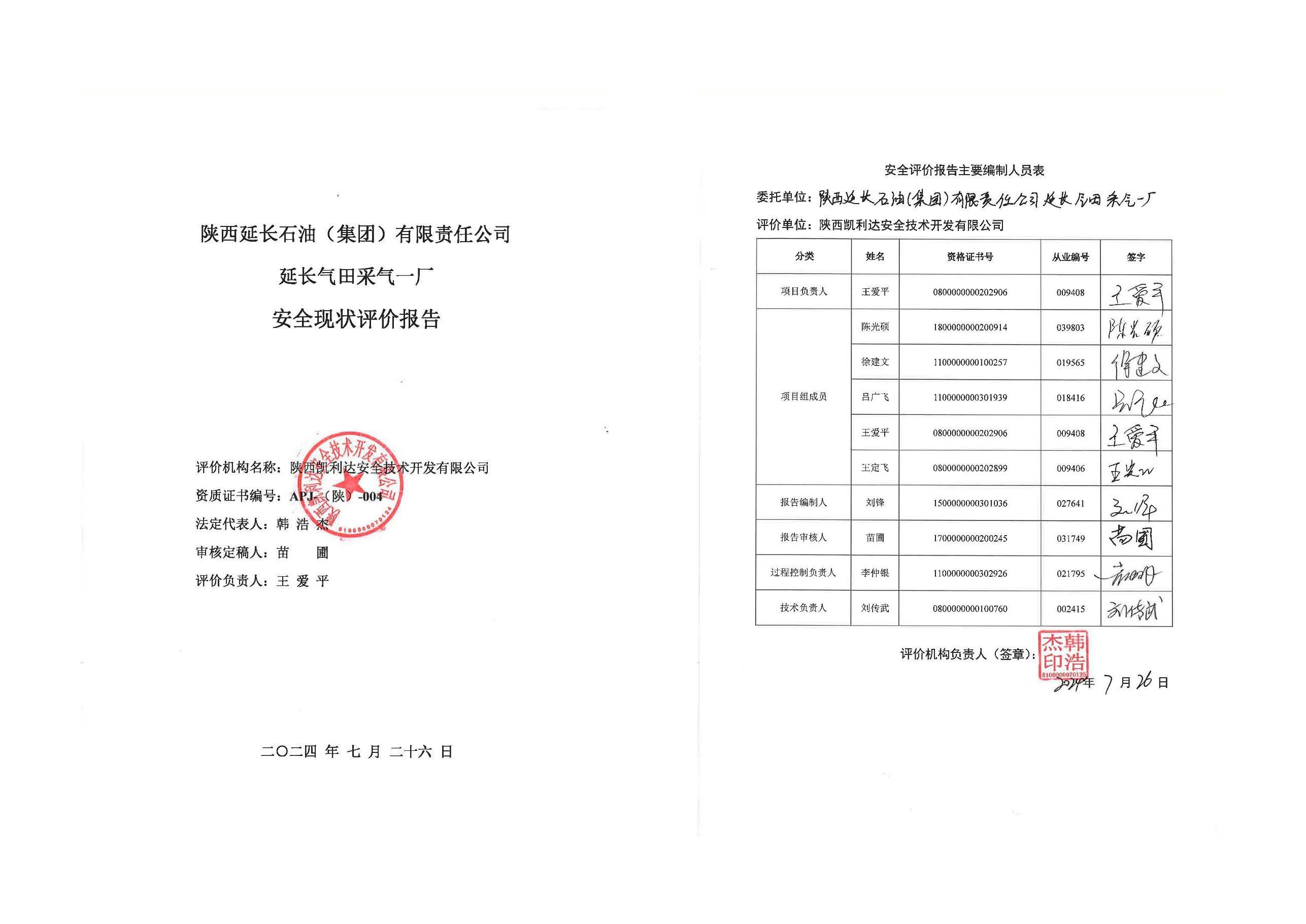 KLDAP[2024]-1.12 陜西延長石油(集團)有限責任公司延長氣田采氣一廠安全現狀評價報告
