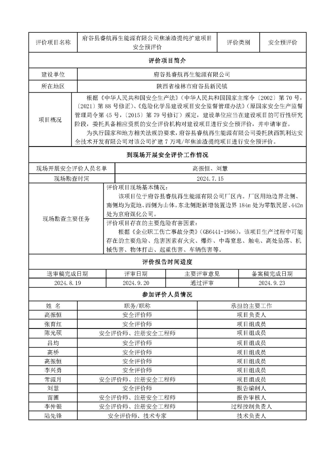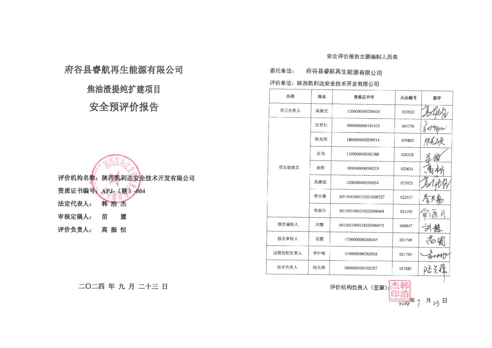 KLDAP[2024]-1.9府谷縣睿航再生能源有限公司焦油渣提純擴建項目安全預評價
