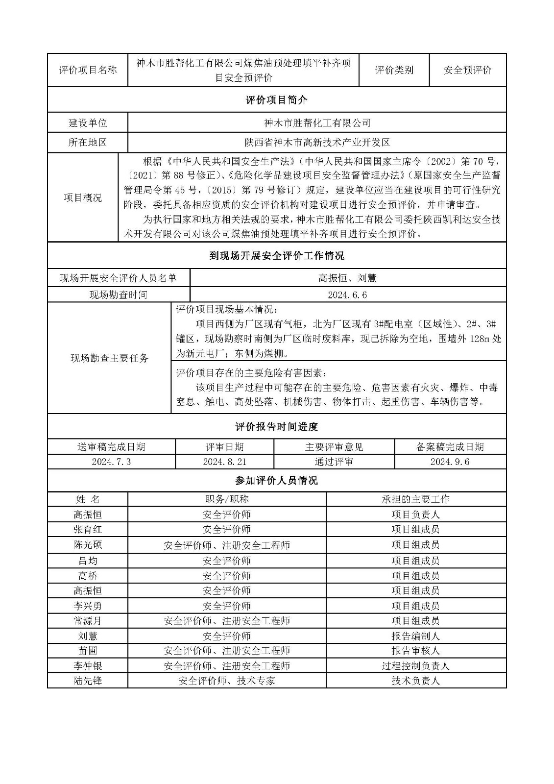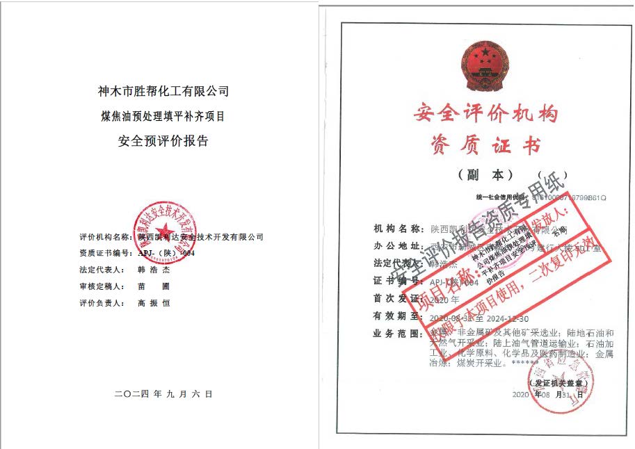KLDAP[2024]-1.11神木市勝幫化工有限公司煤焦油預處理填平補齊項目安全預評