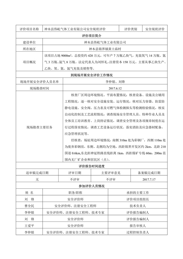 神木縣偉屹氣體工業有限公司安全現狀評價