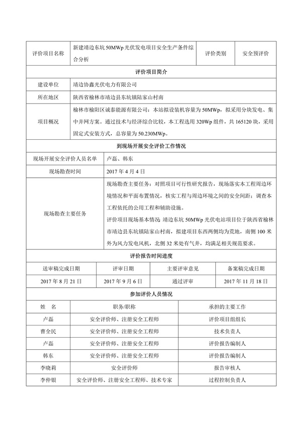 新建靖邊東坑50MWP光伏發(fā)電項目安全生產(chǎn)條件綜合分析09