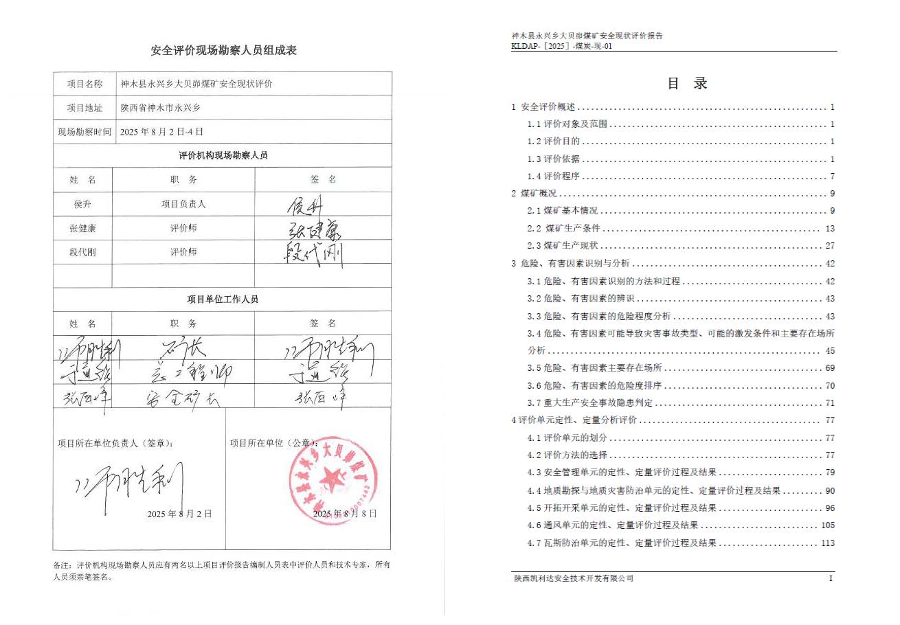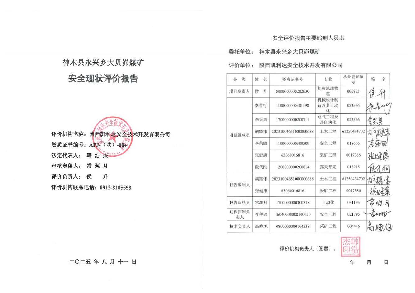 KLDAP[2025]-煤炭-現-01神木縣永興鄉大貝峁煤礦安全現狀評價