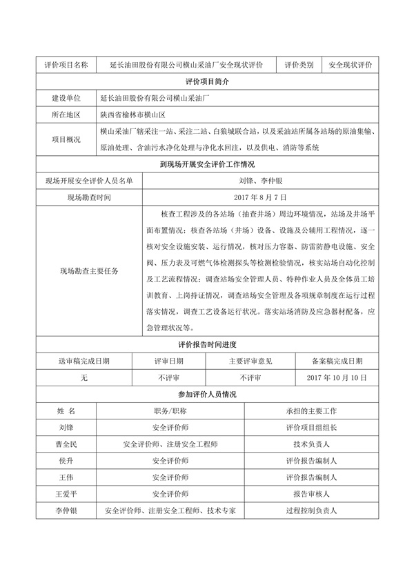 延長(zhǎng)油田股份有限公司橫山采油廠安全現(xiàn)狀評(píng)價(jià)