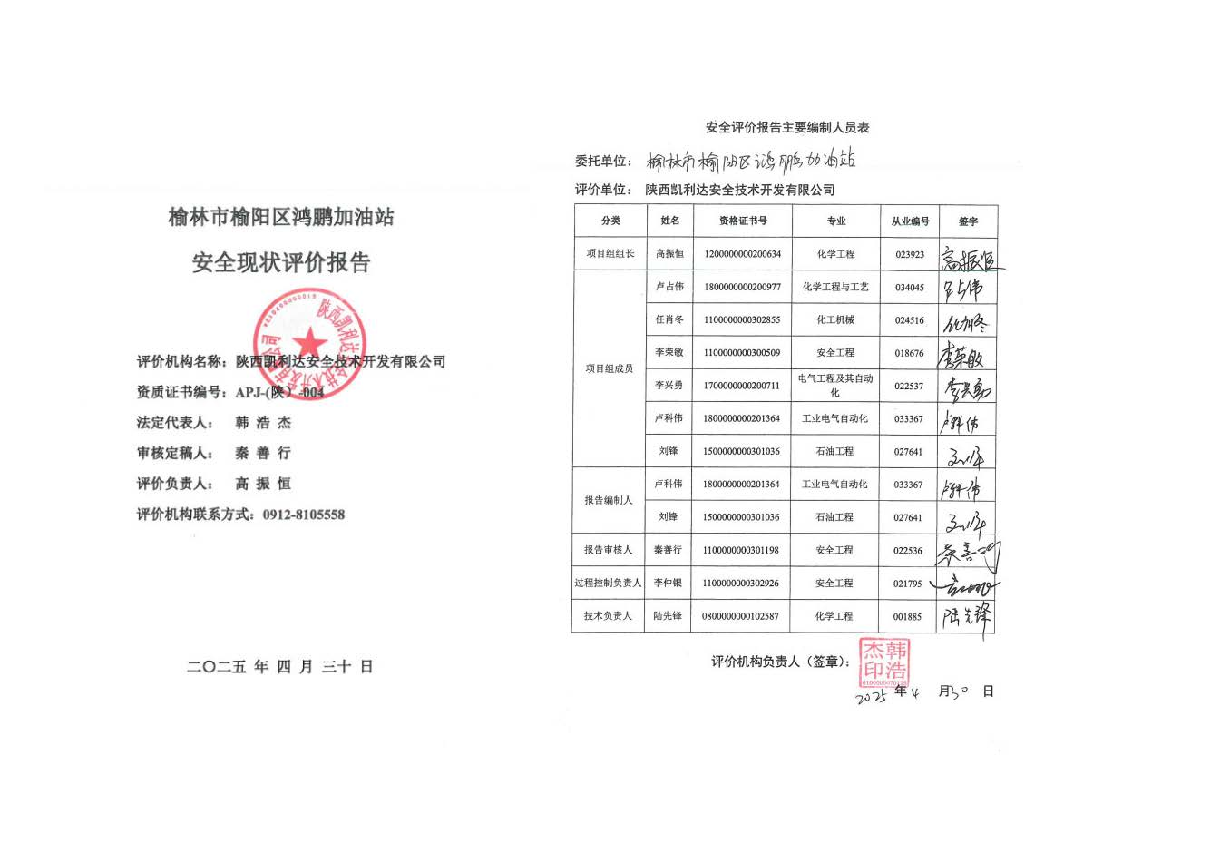 KLDAP[2025]-1.15榆林市榆陽區鴻鵬加油站安全現狀評價
