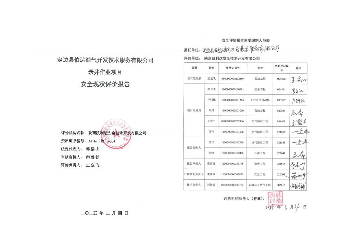 KLDAP[2025]-1.5定邊縣伯達(dá)油氣開發(fā)技術(shù)服務(wù)有限公司錄井作業(yè)項目安全現(xiàn)狀評價