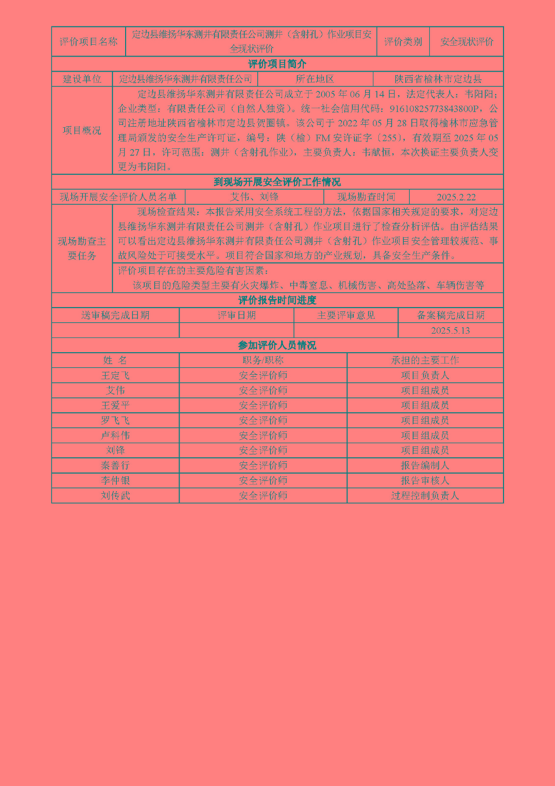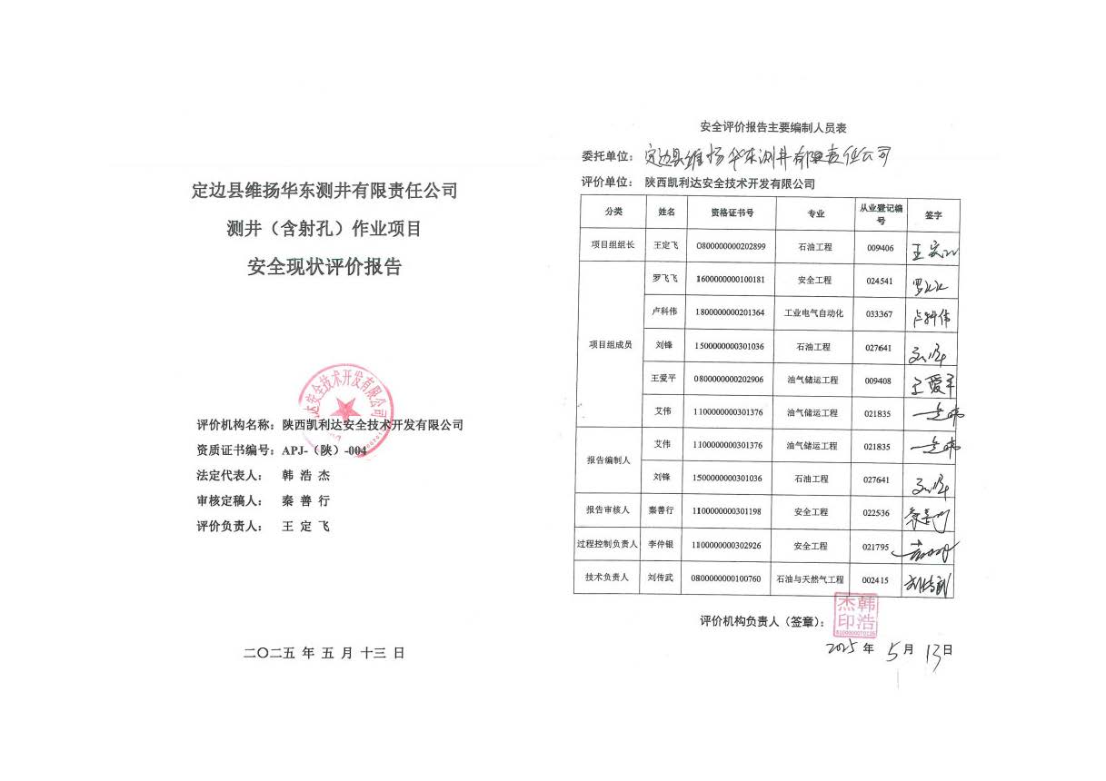KLDAP[2025]-1.7定邊縣維揚華東測井有限責任公司測井(含射孔)作業項目安全現狀評價