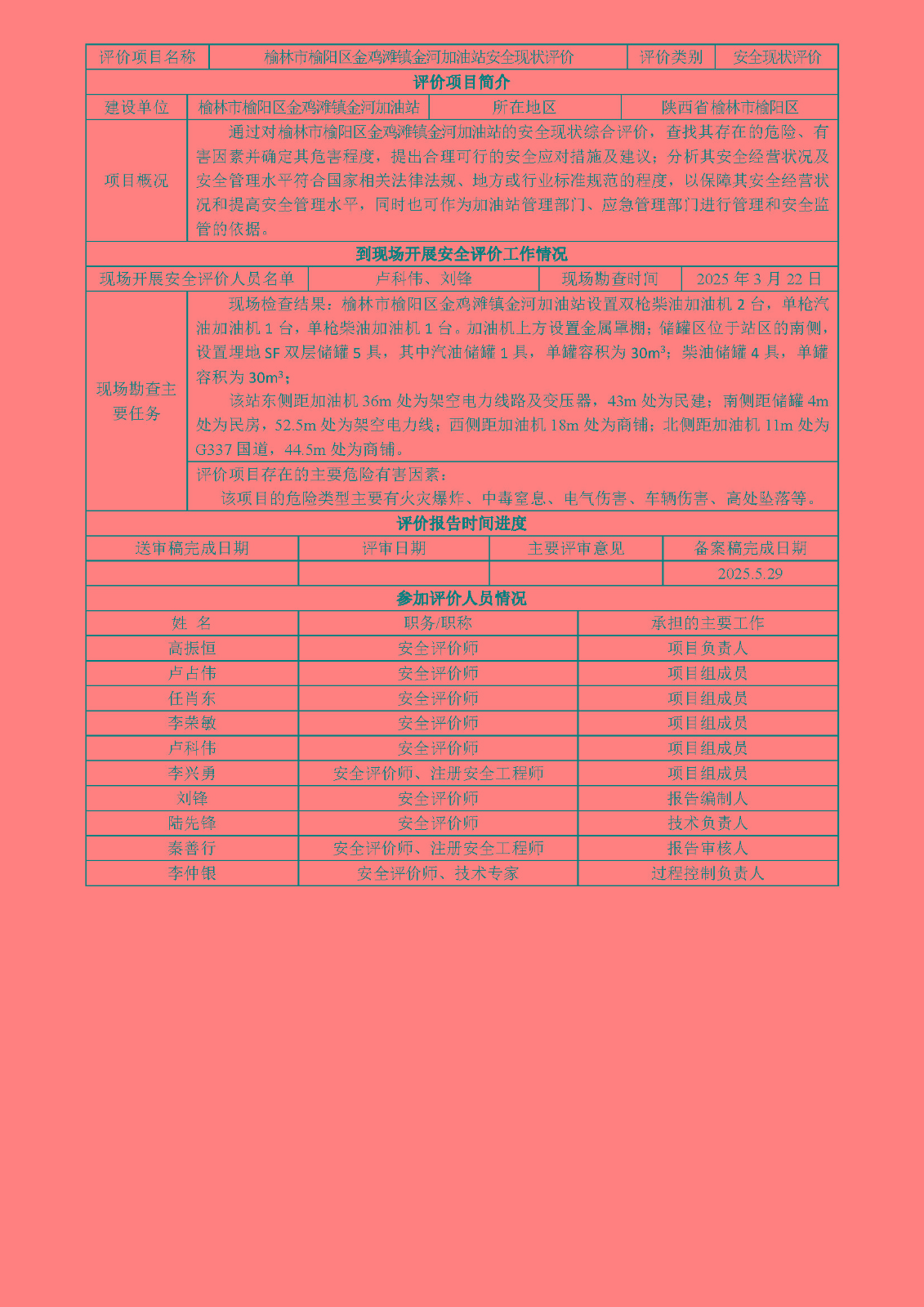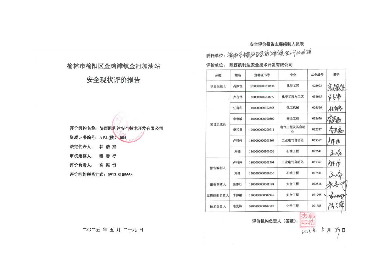 KLDAP[2025]-1.14榆林市榆陽區金雞灘鎮金河加油站安全現狀評價
