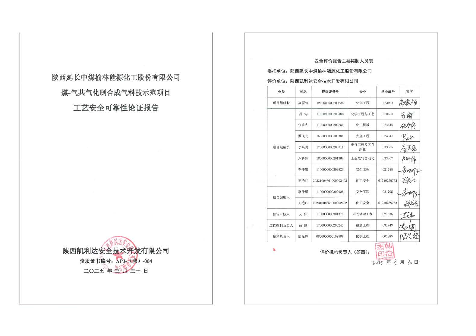 KLDAP[2024]-3.18陜西延長(zhǎng)中煤榆林能源化工股份有限公司煤-氣共氣化制合成氣科技示范項(xiàng)目工藝安全可靠性論證報(bào)告